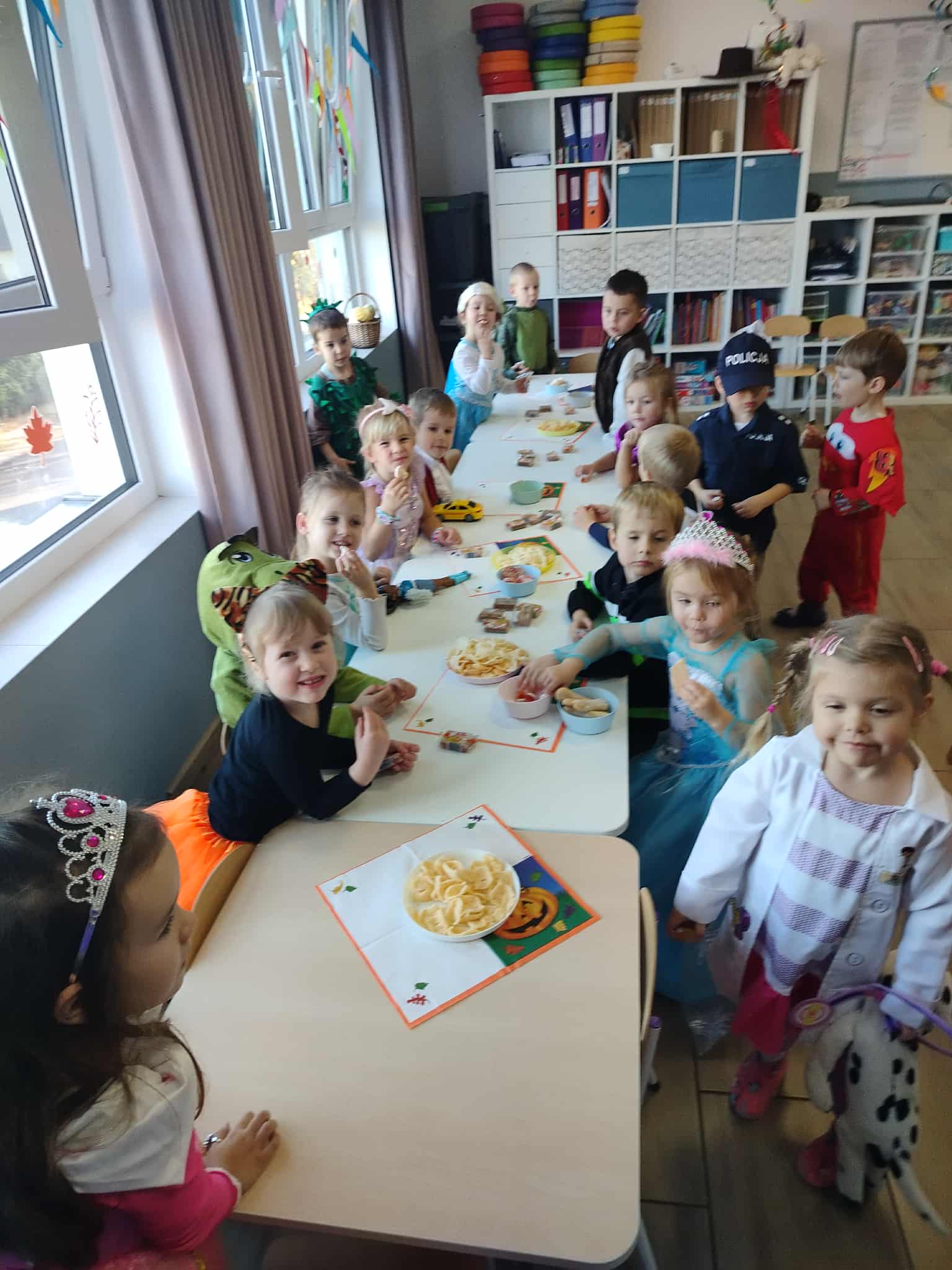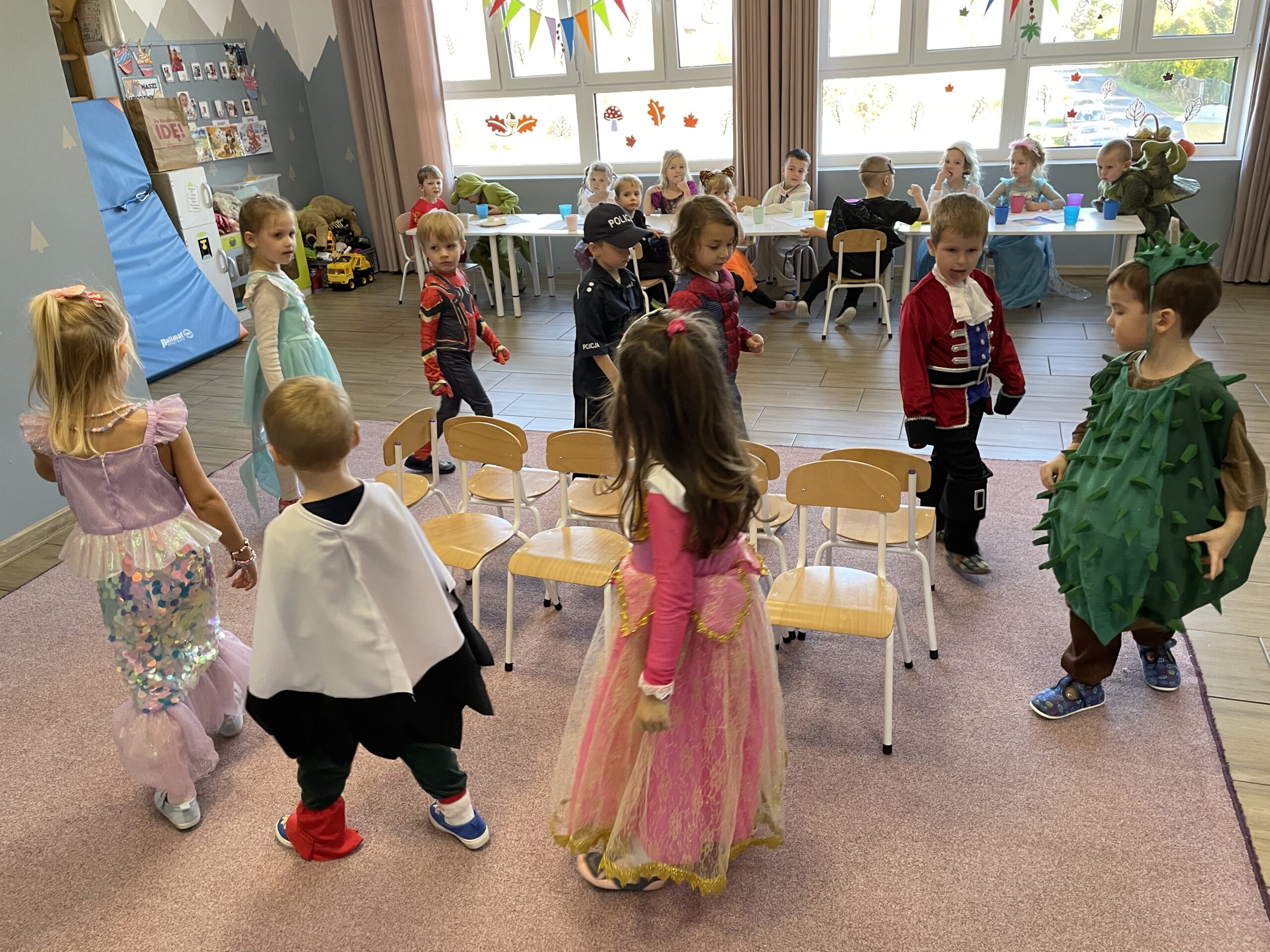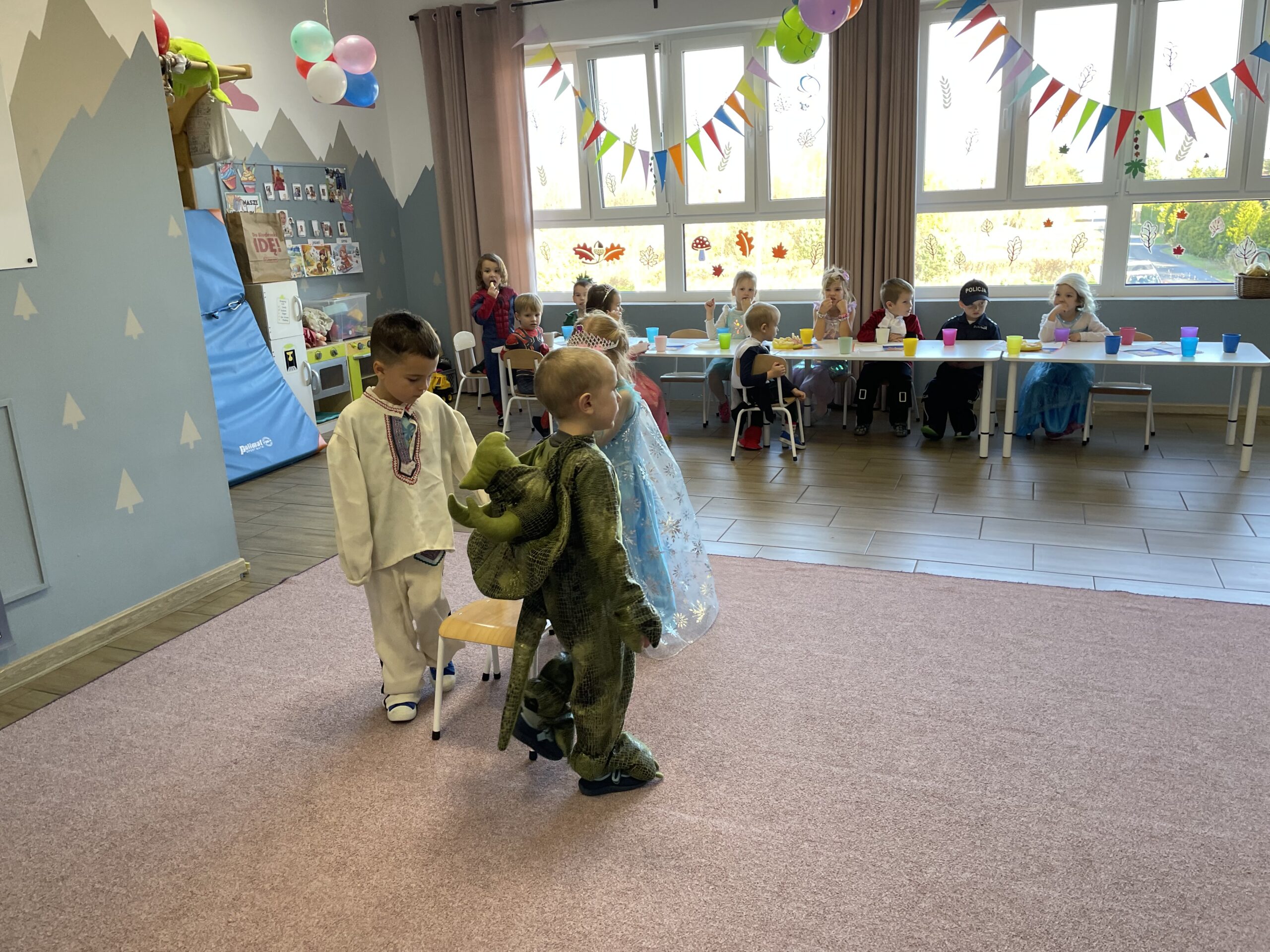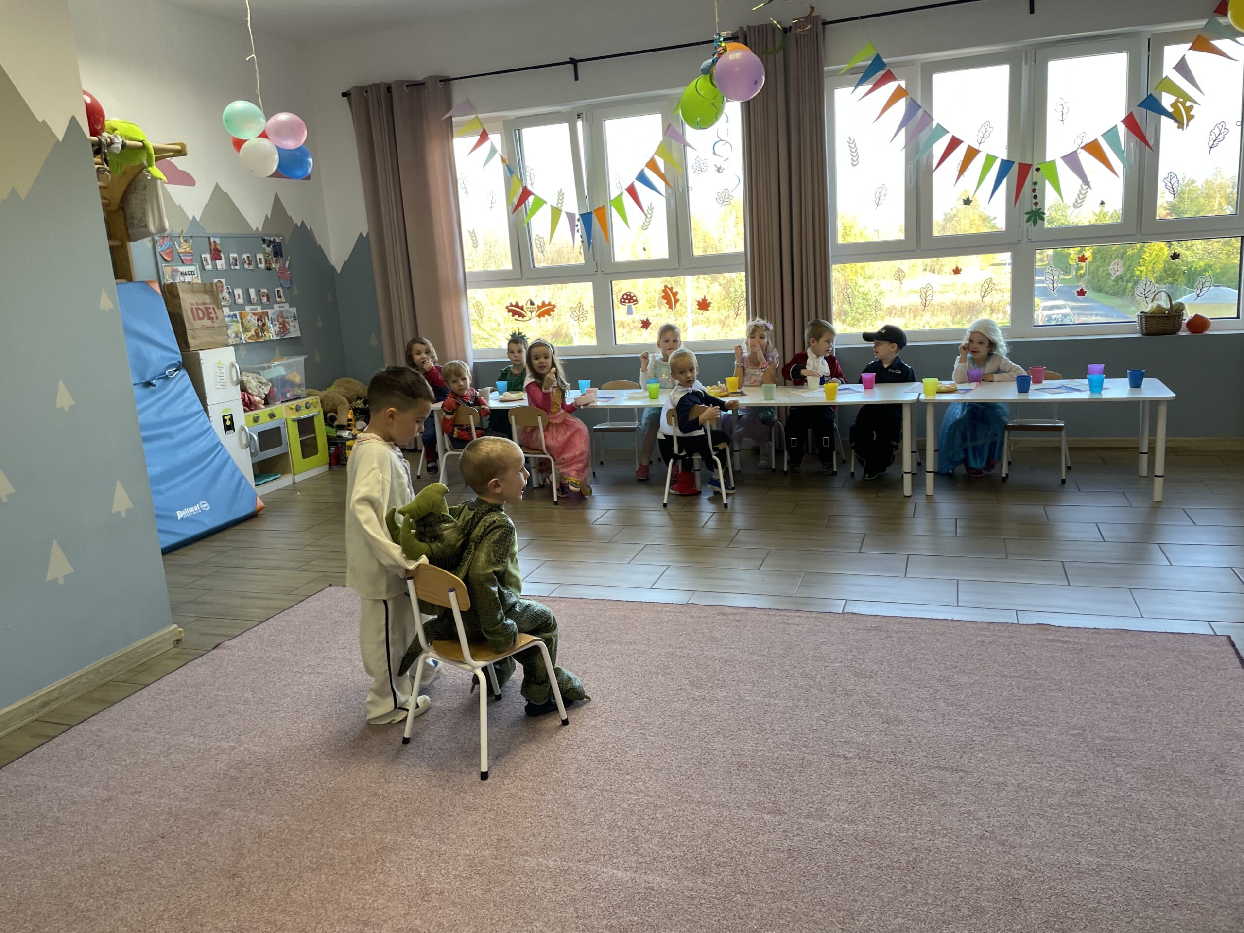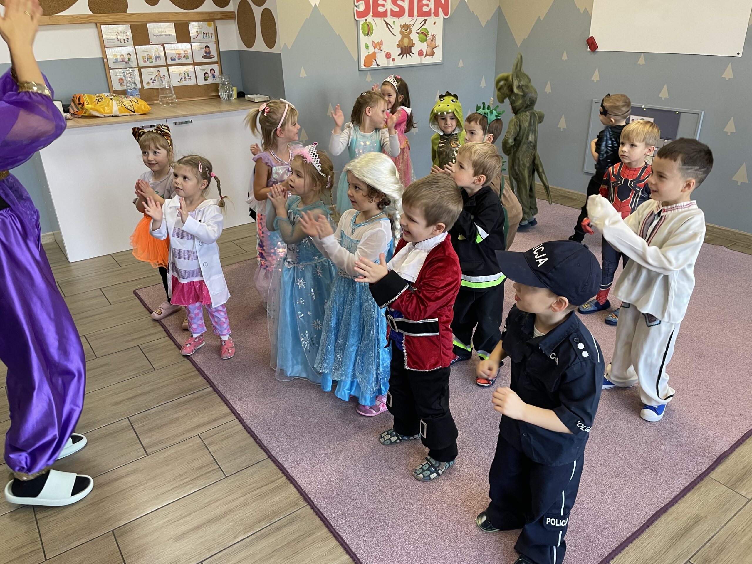 W naszym przedszkolu odbył się bal jesienny, a Bystre Foki zamieniły się w najróżniejsze postacie związane z jesienią lub ulubionymi bajkami. Były tańce i zorganizowane zabawy, a także okazja na pozowane zdjęcia.
