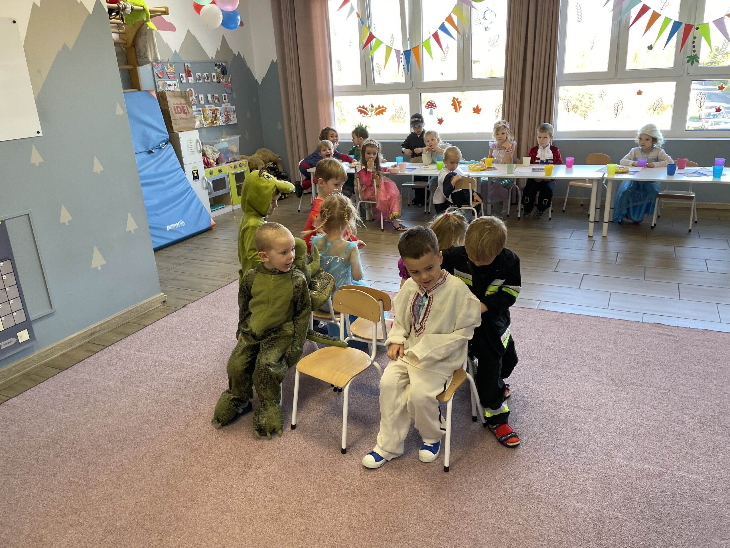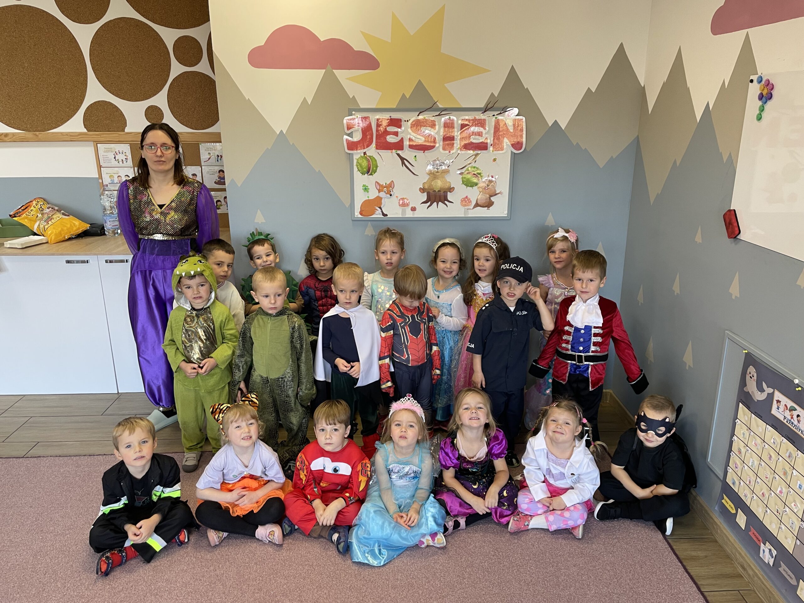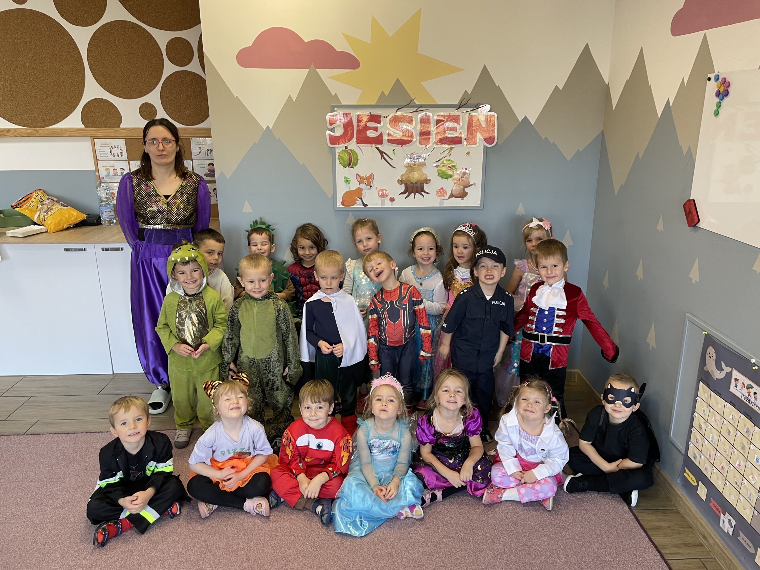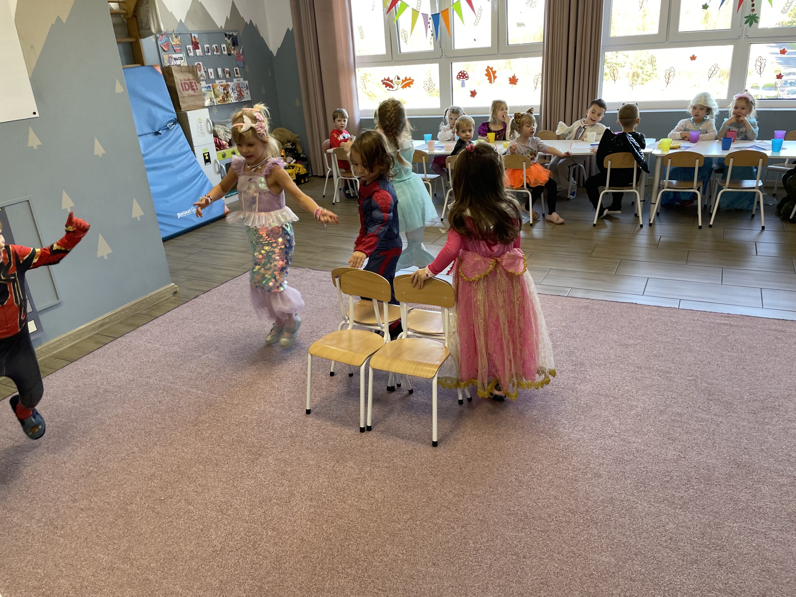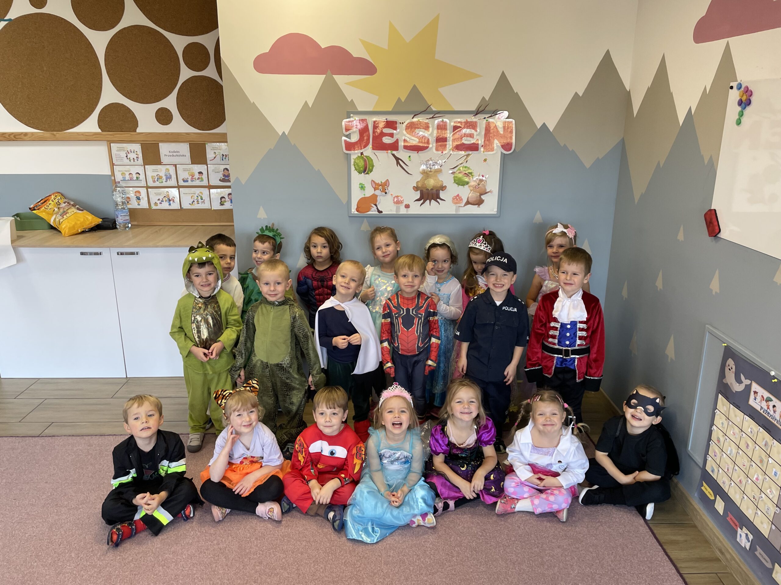 W naszym przedszkolu odbył się bal jesienny, a Bystre Foki zamieniły się w najróżniejsze postacie związane z jesienią lub ulubionymi bajkami. Były tańce i zorganizowane zabawy, a także okazja na pozowane zdjęcia.