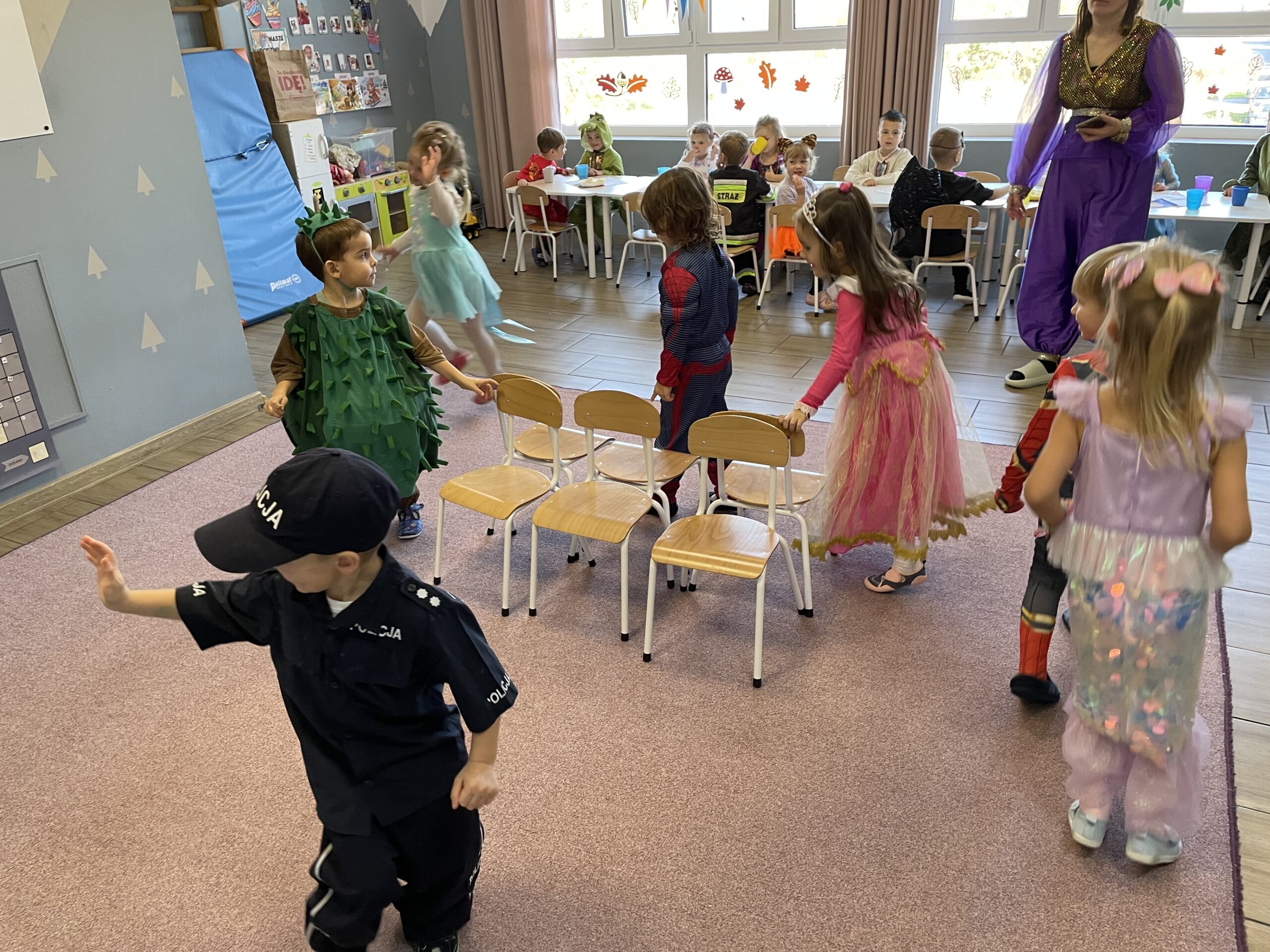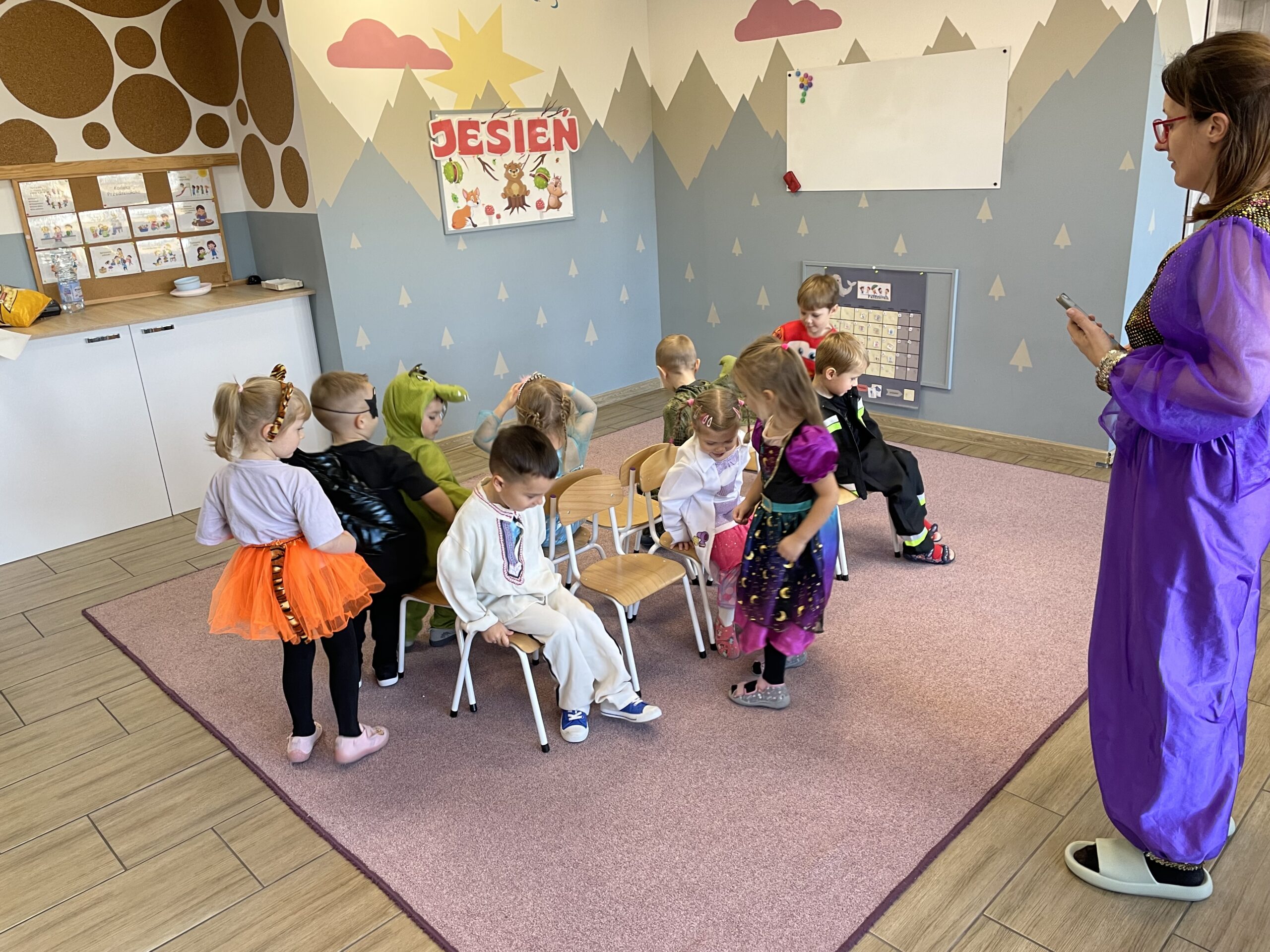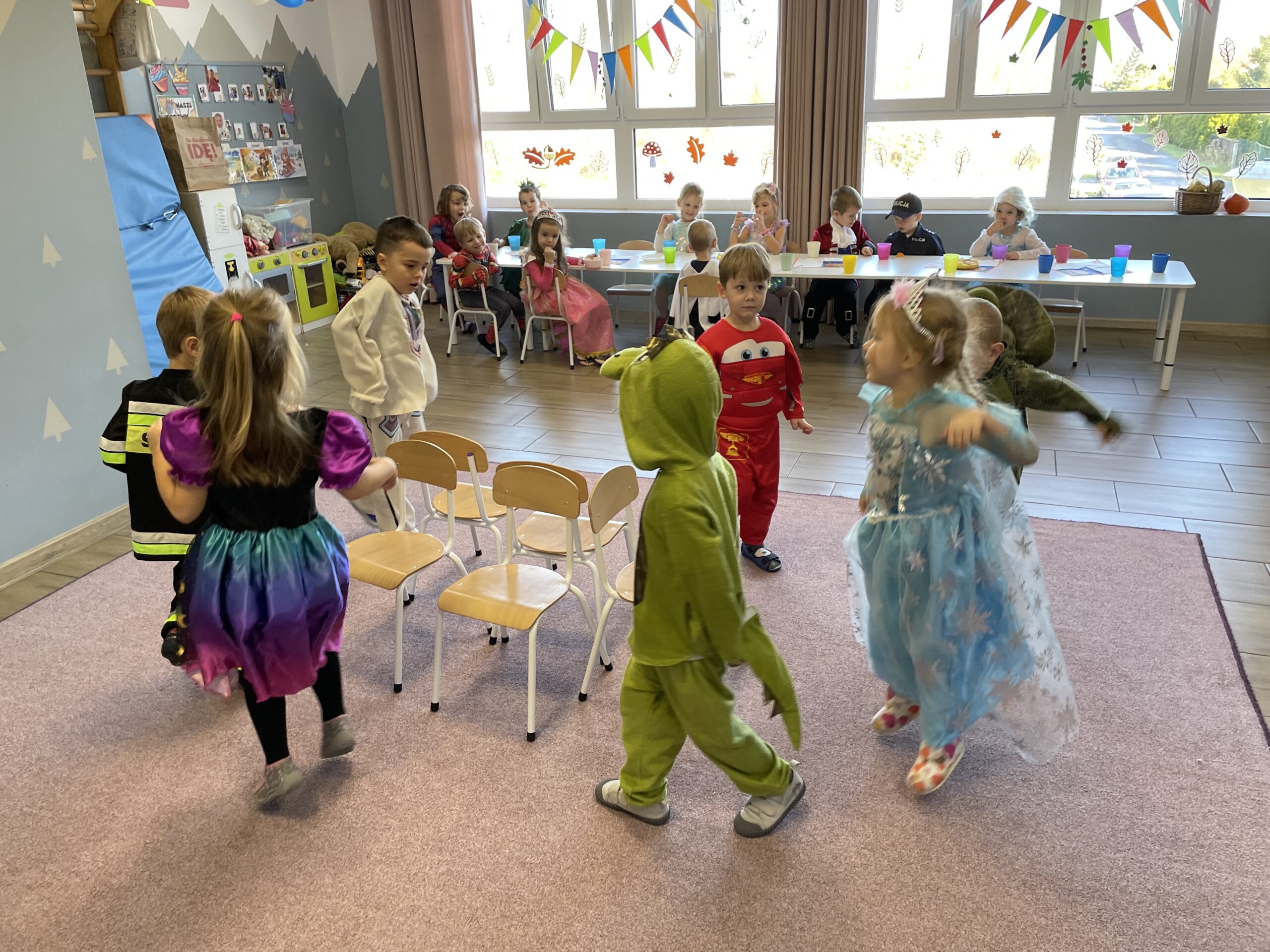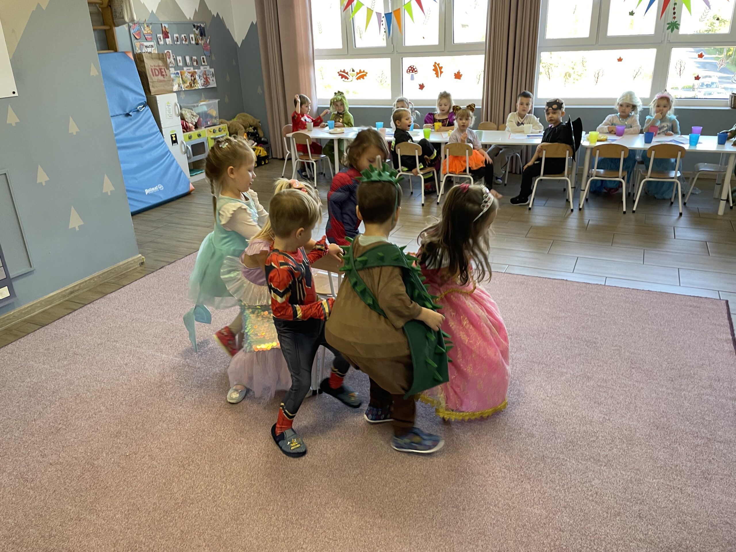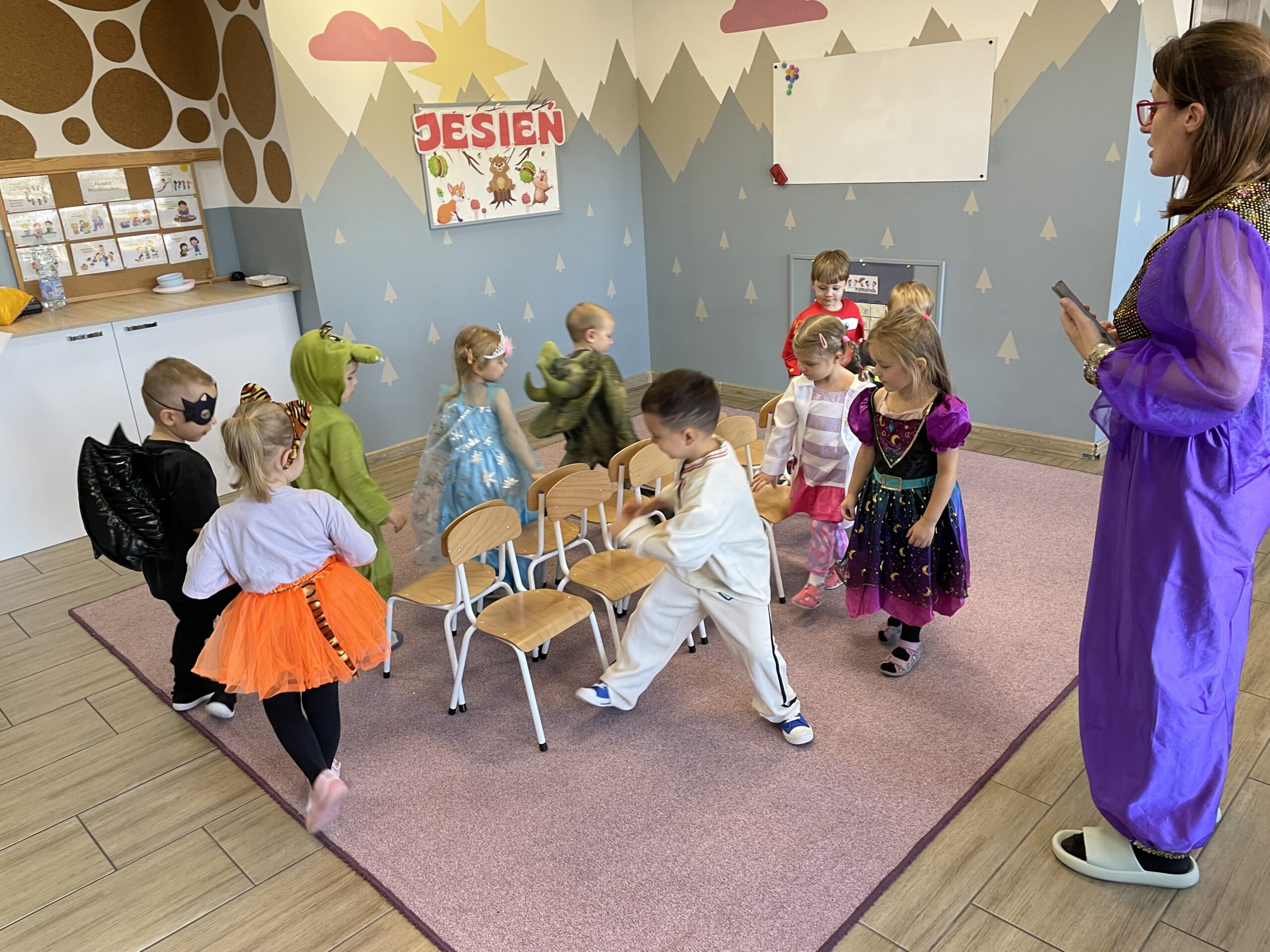 W naszym przedszkolu odbył się bal jesienny, a Bystre Foki zamieniły się w najróżniejsze postacie związane z jesienią lub ulubionymi bajkami. Były tańce i zorganizowane zabawy, a także okazja na pozowane zdjęcia.