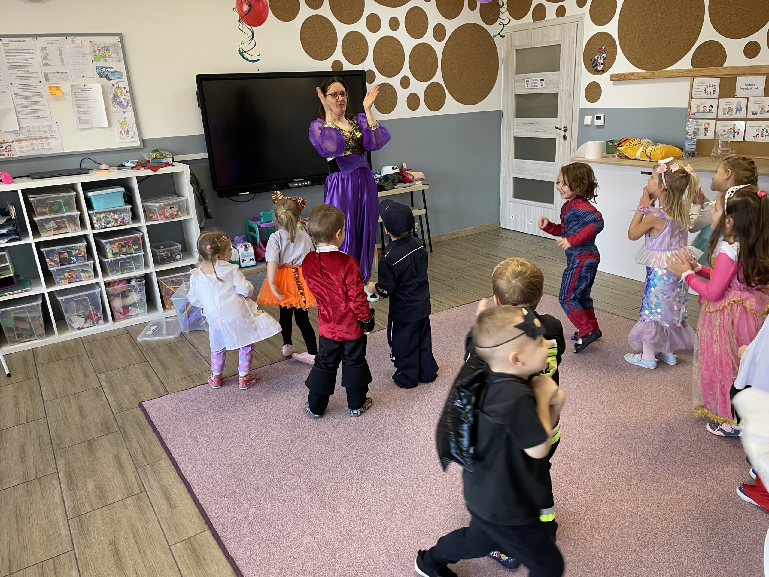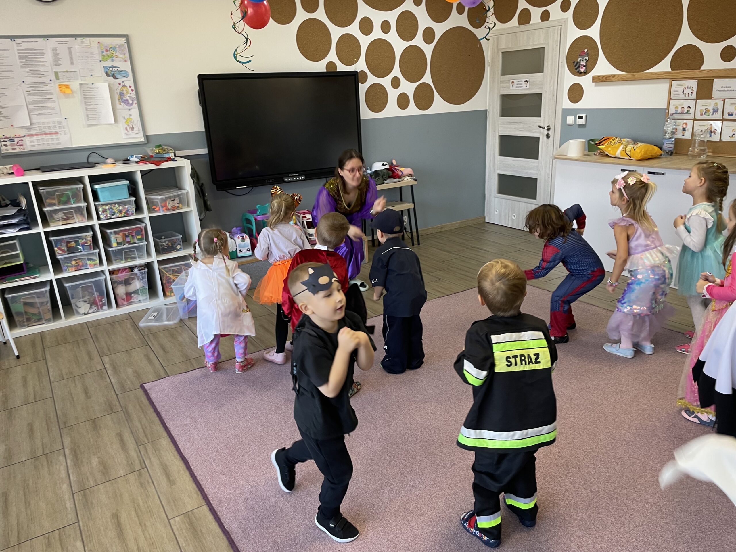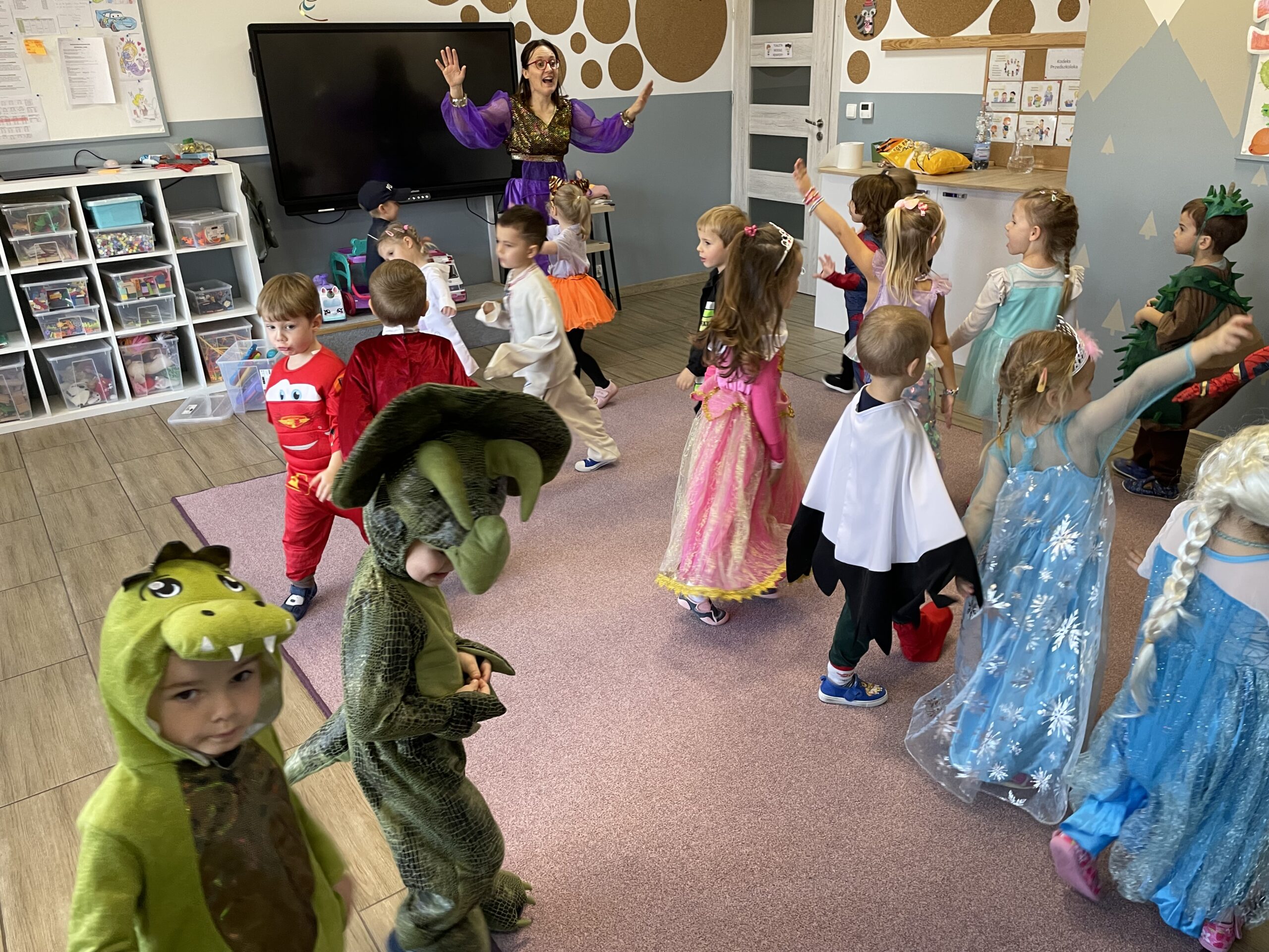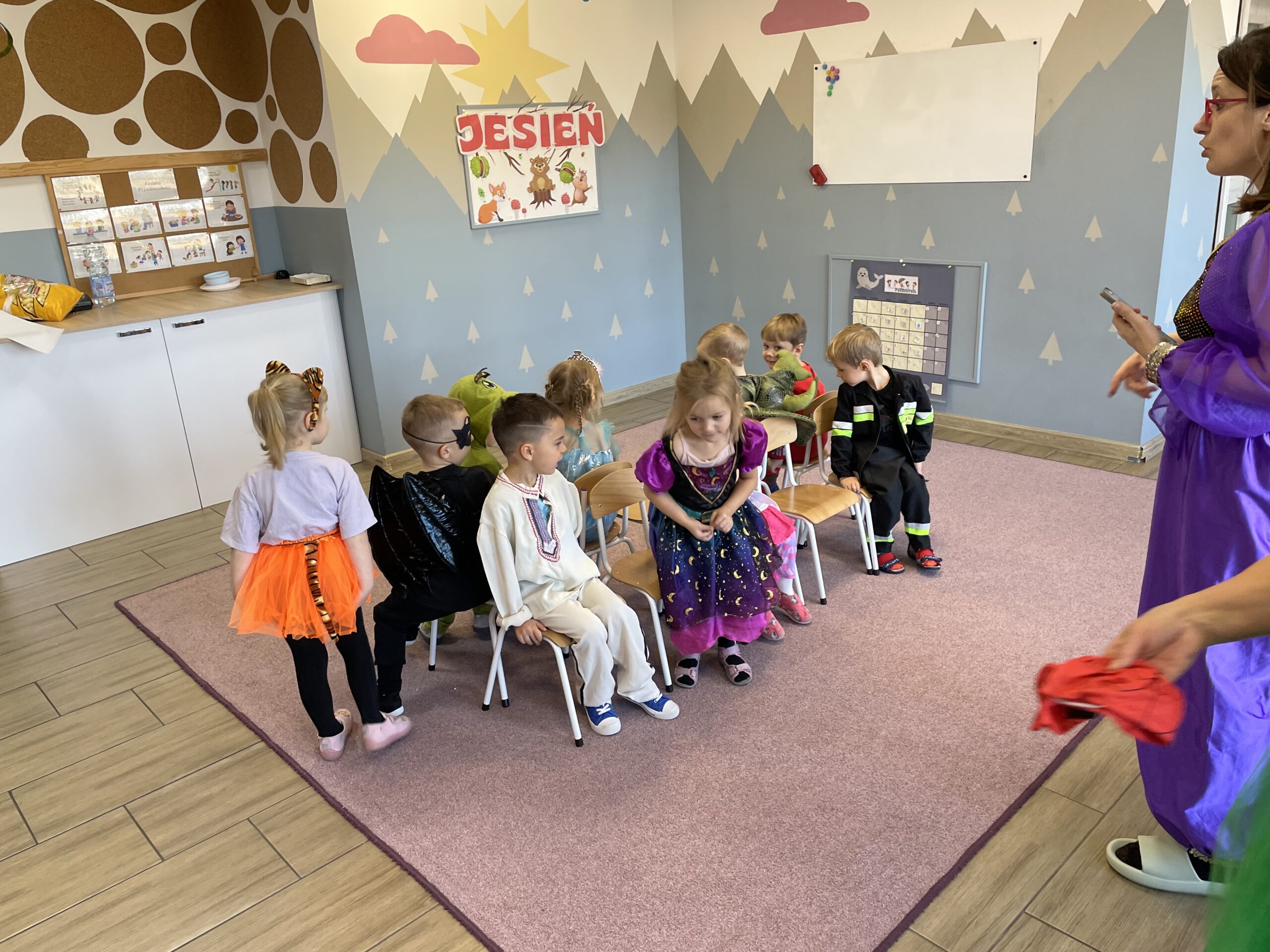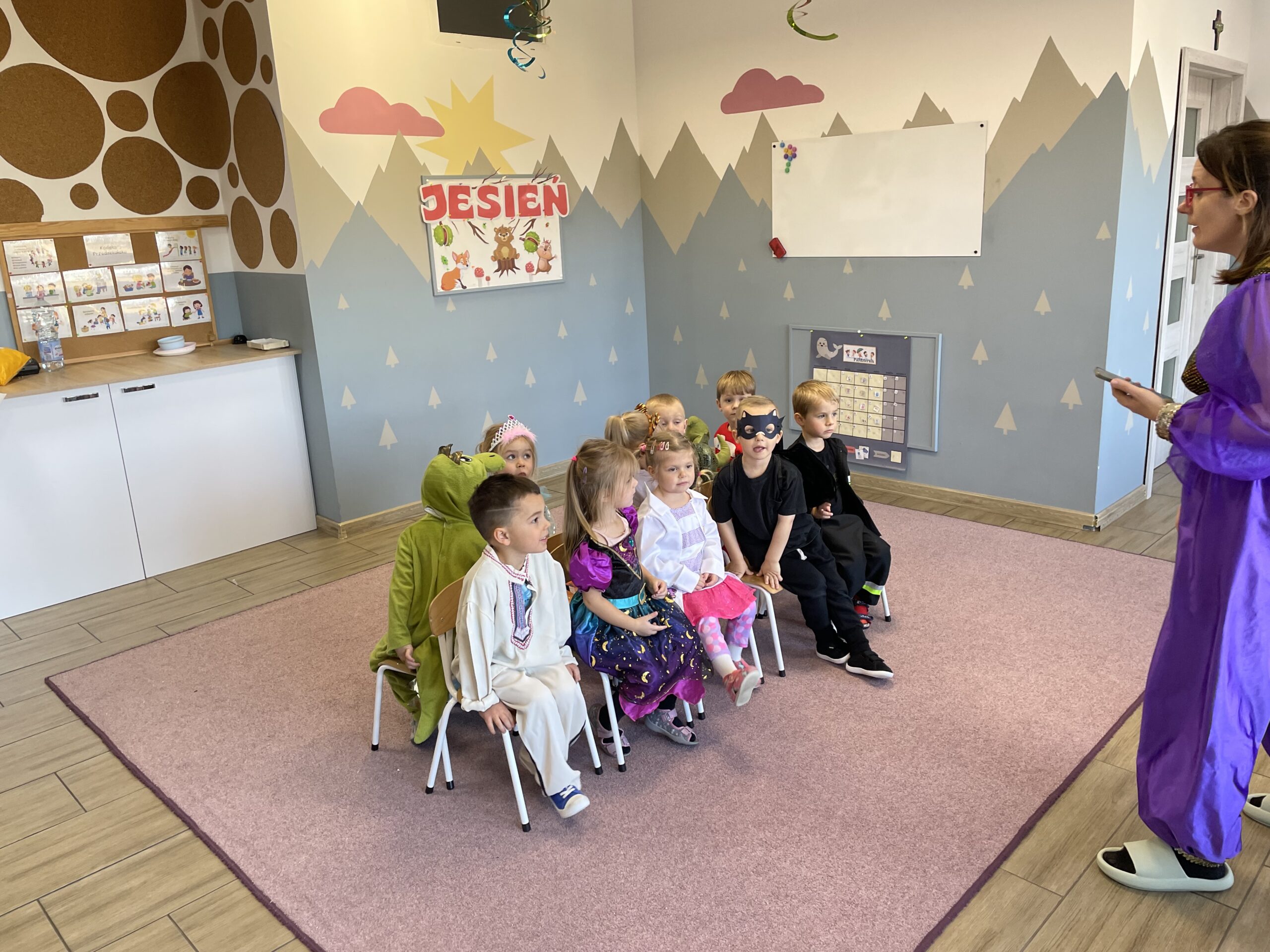 W naszym przedszkolu odbył się bal jesienny, a Bystre Foki zamieniły się w najróżniejsze postacie związane z jesienią lub ulubionymi bajkami. Były tańce i zorganizowane zabawy, a także okazja na pozowane zdjęcia.