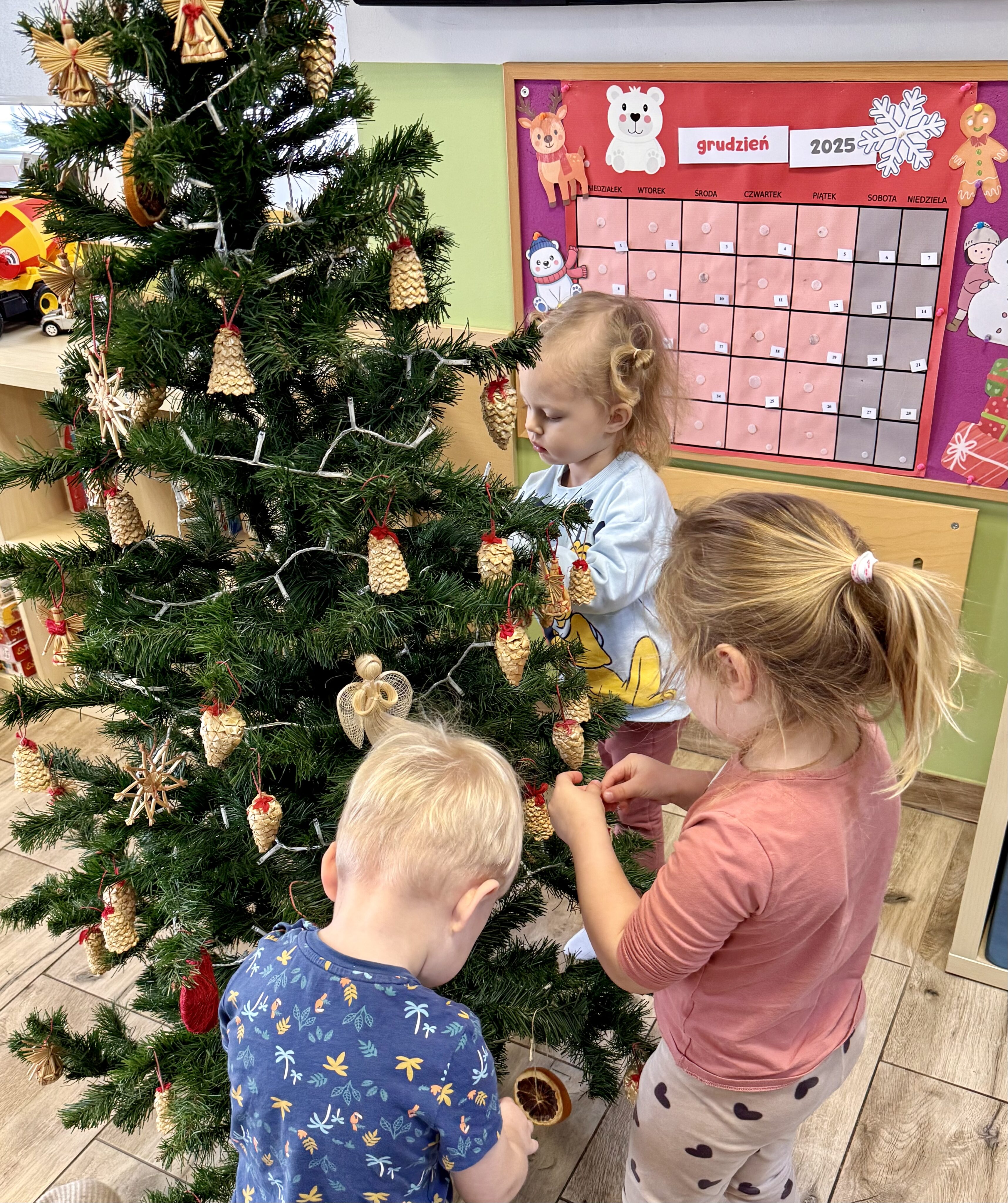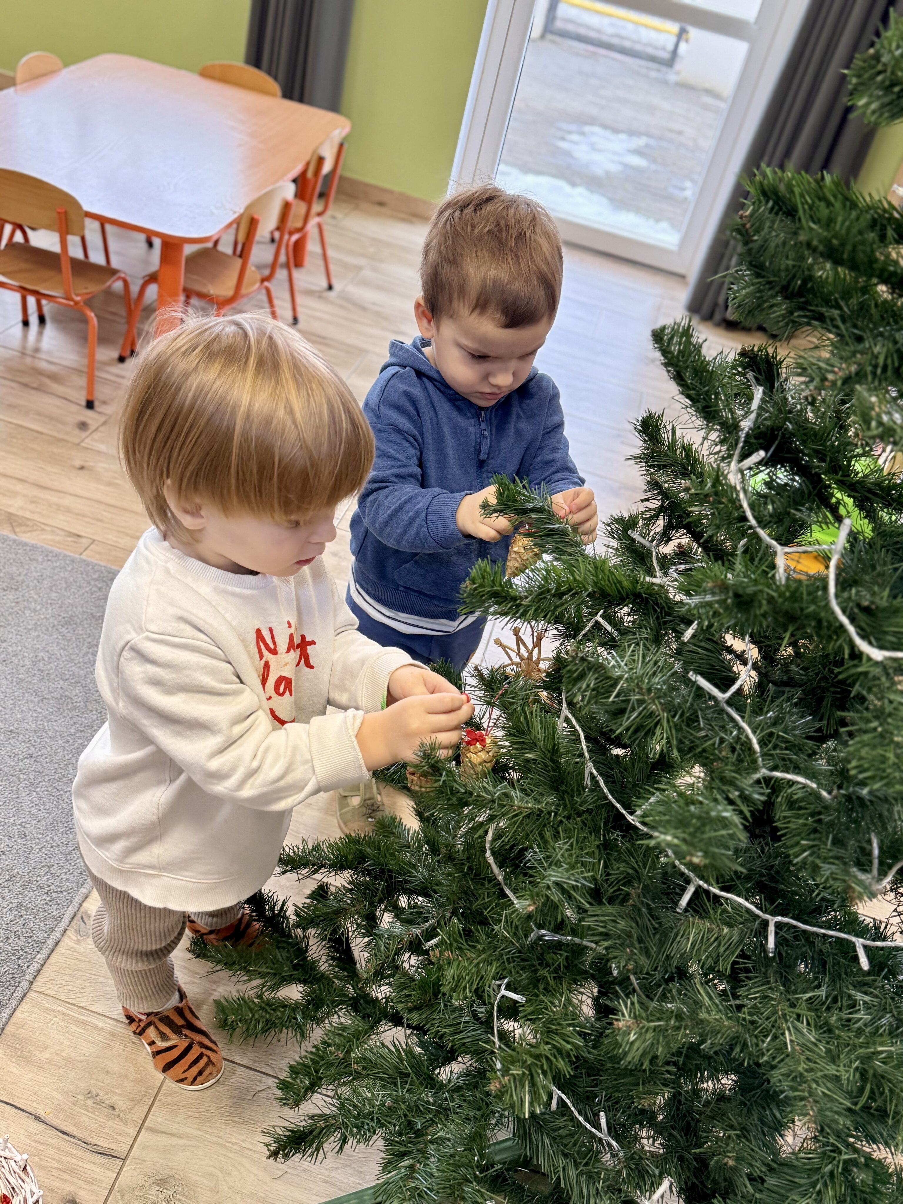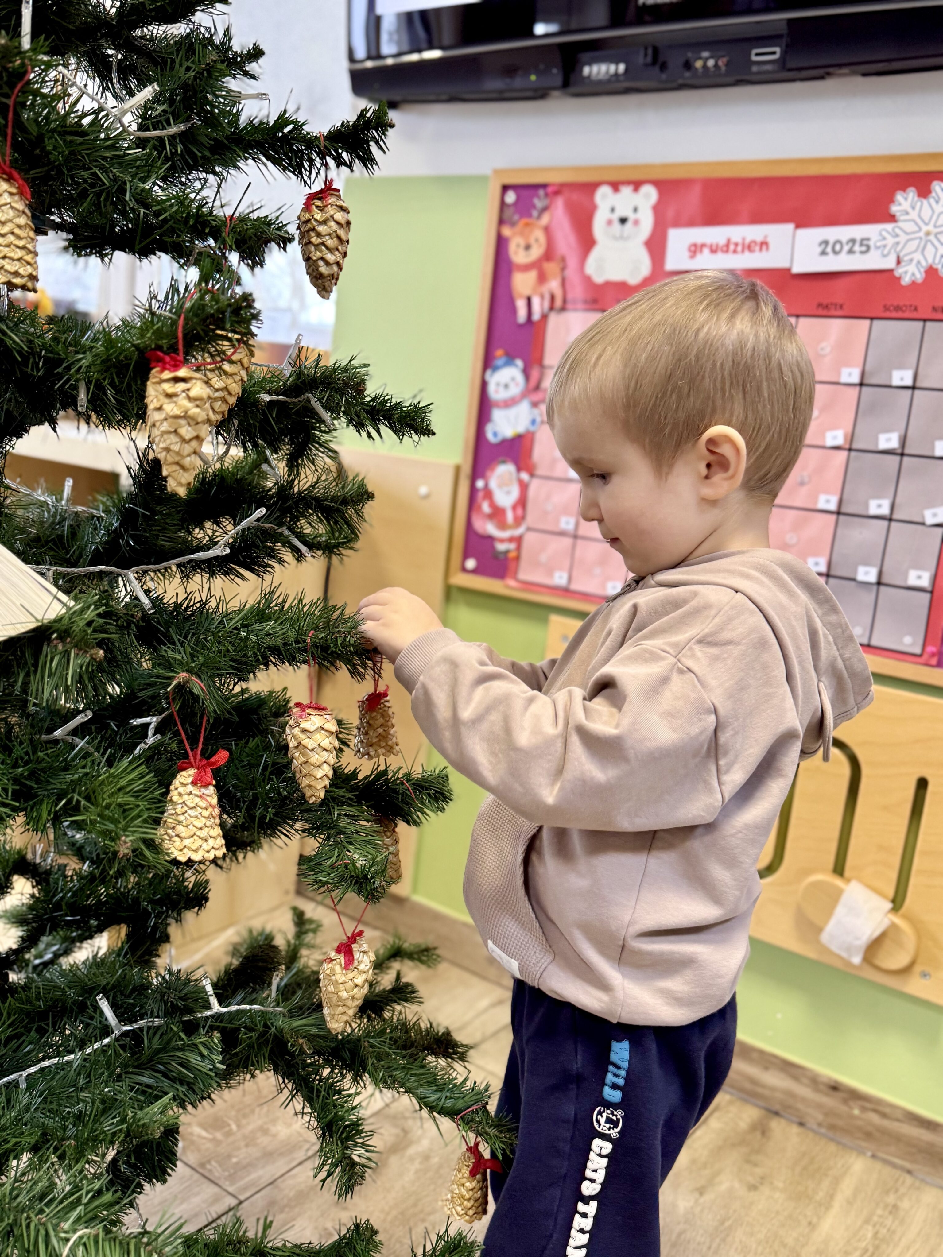 Grupa Białe Misie jak co roku zadbała o wyjątkową atmosferę! Nasza choinka została ubrana zgodnie z tradycją – pełna kolorowych bombek, błyszczących łańcuchów i światełek, które rozświetlają każdy zakątek. 🌟✨