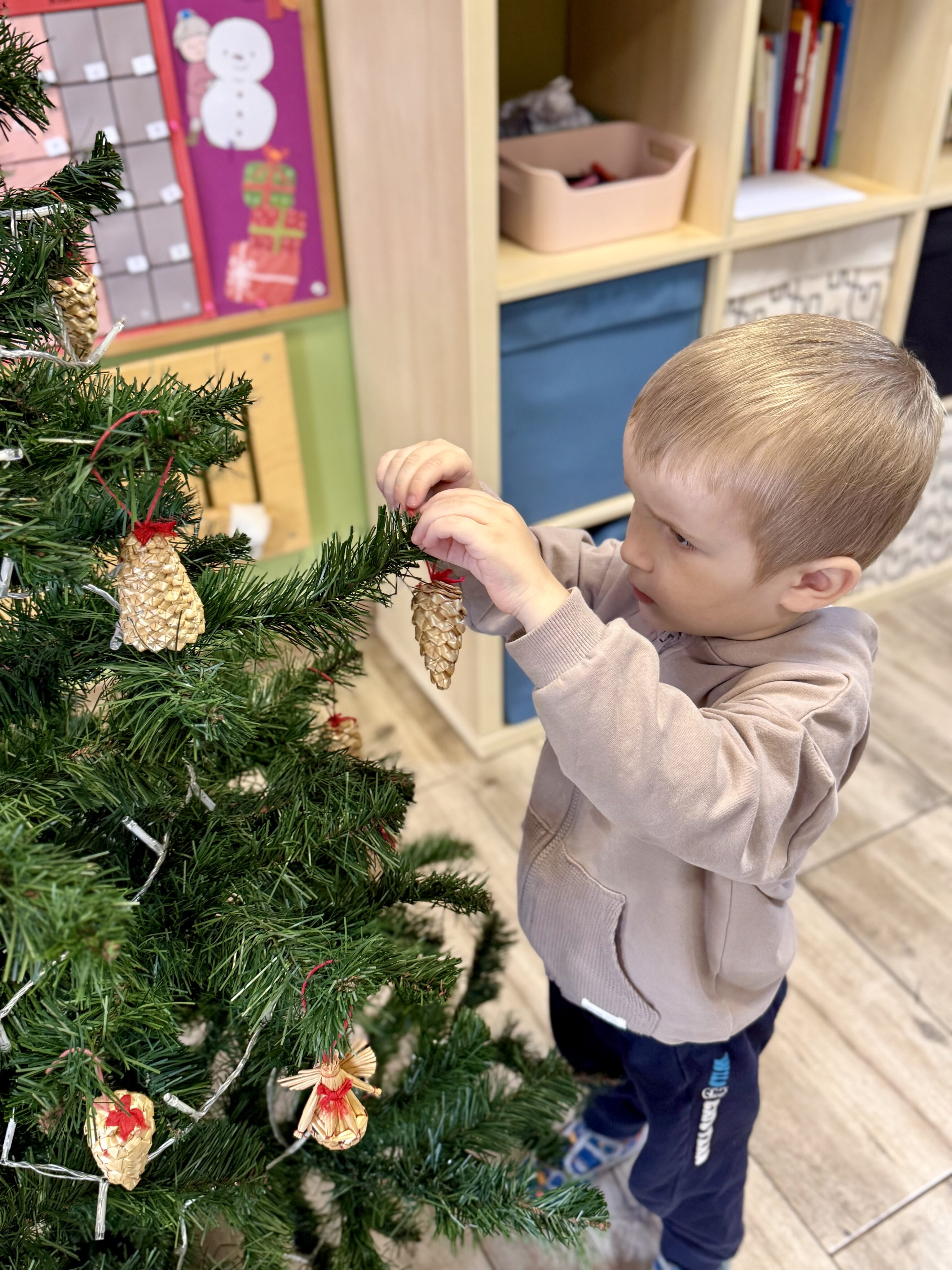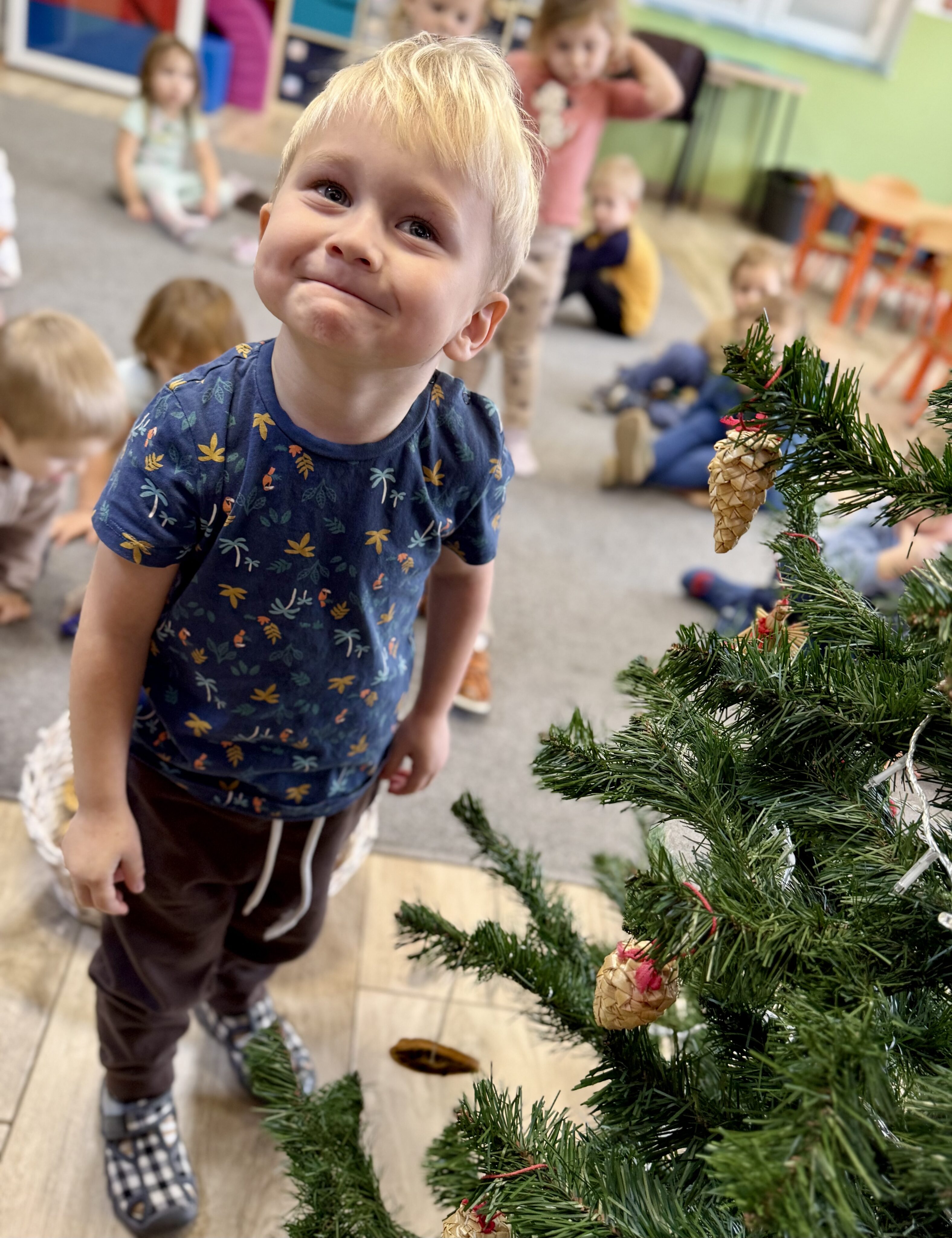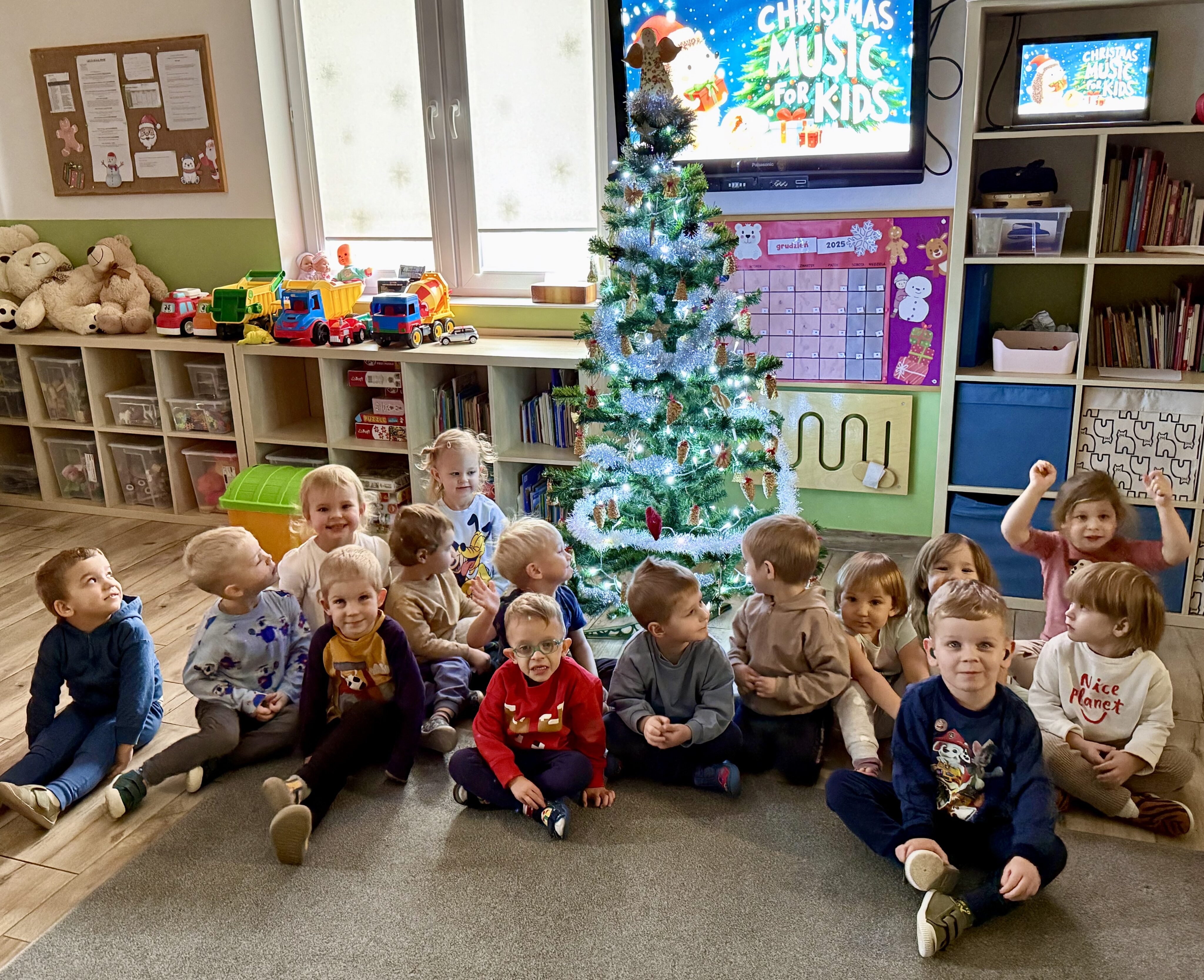 Grupa Białe Misie jak co roku zadbała o wyjątkową atmosferę! Nasza choinka została ubrana zgodnie z tradycją – pełna kolorowych bombek, błyszczących łańcuchów i światełek, które rozświetlają każdy zakątek. 🌟✨