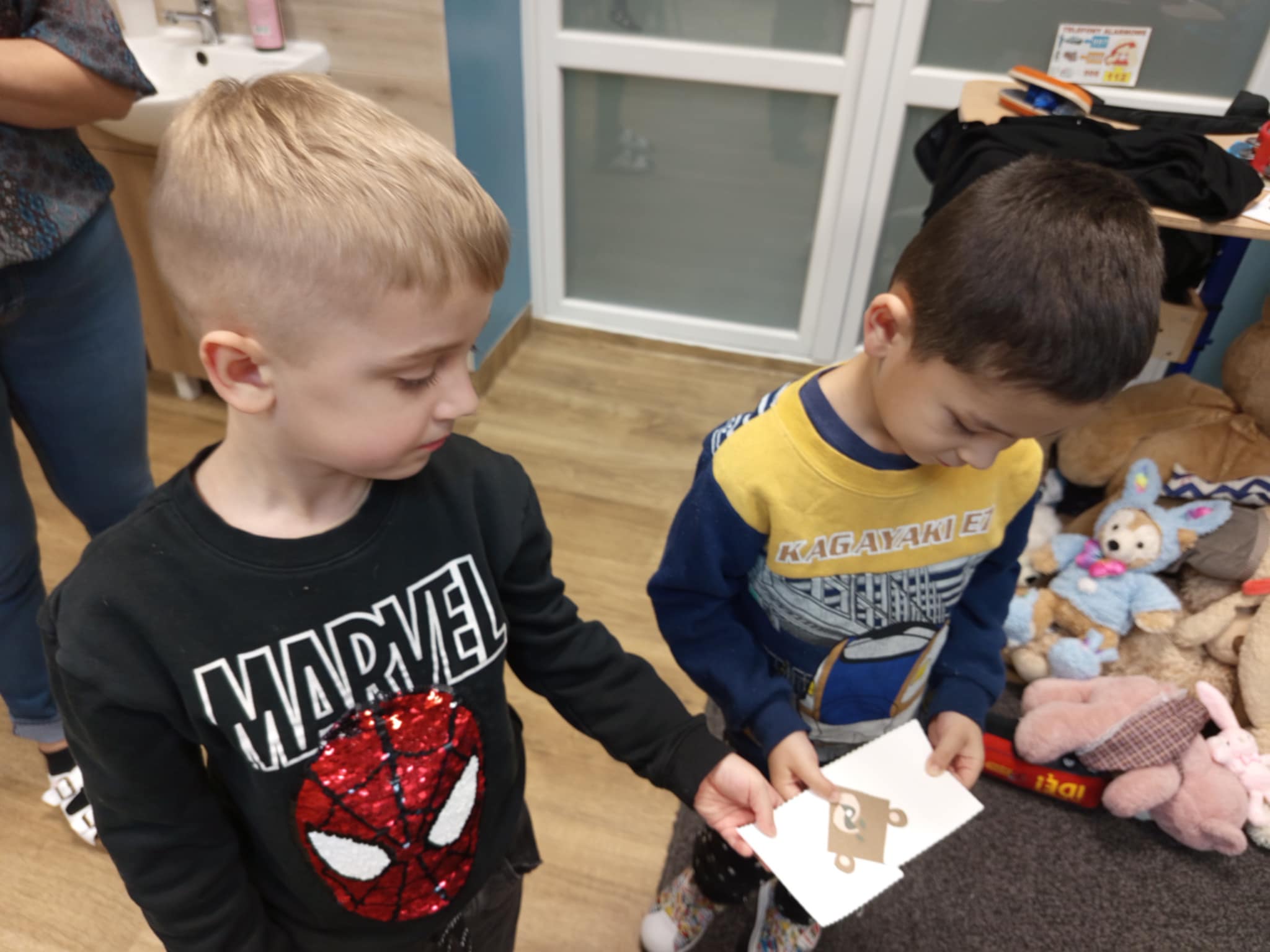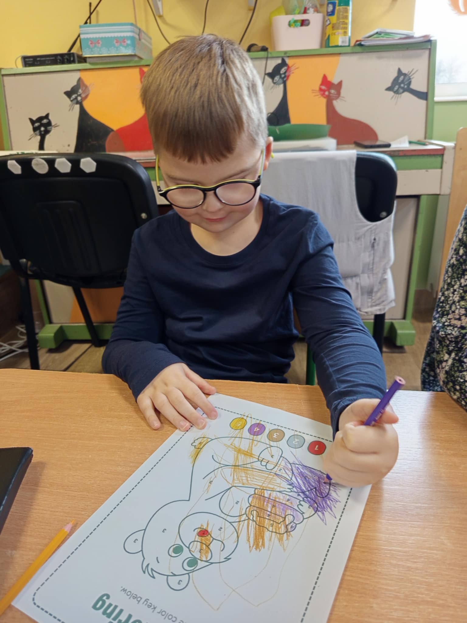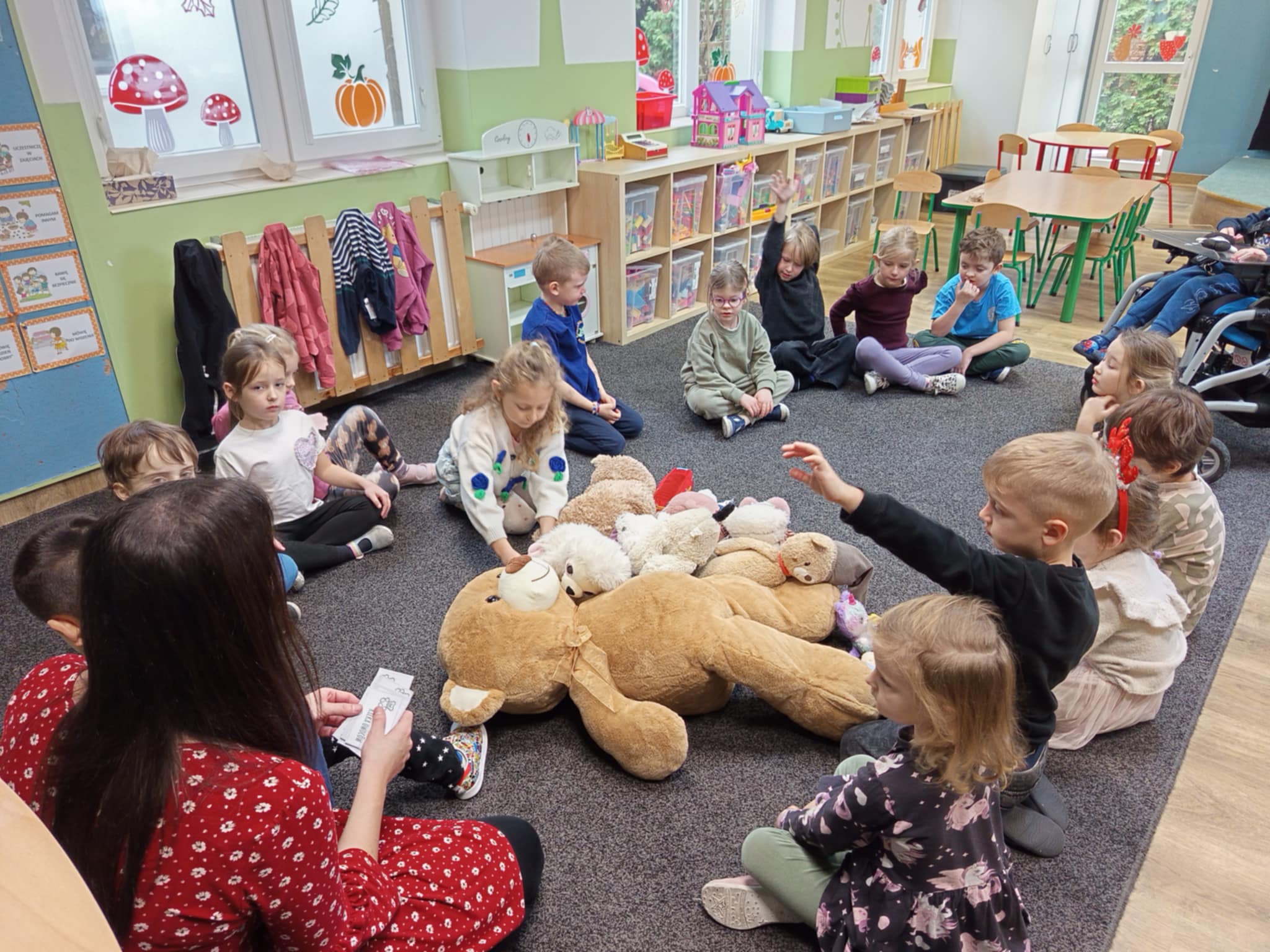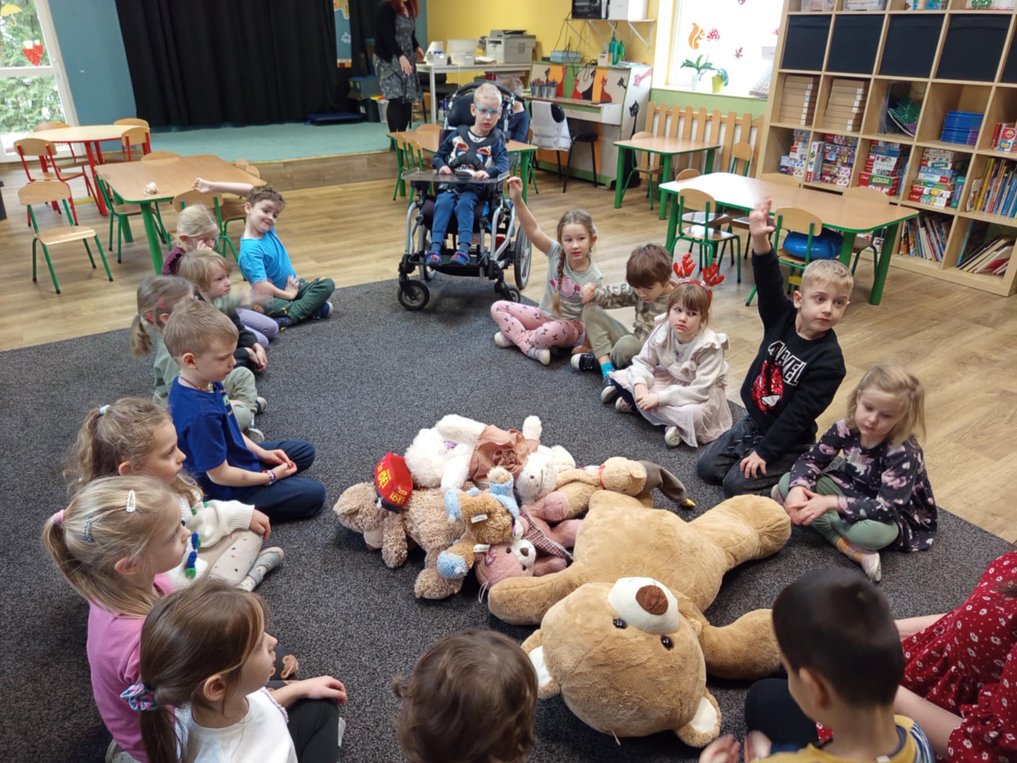Dzisiaj świętowaliśmy w naszej grupie Światowy Dzień Pluszowego Misia. W trakcie porannych zajęć wykonywaliśmy różne „misiowe” zadania – rozpoznawaliśmy i nazwywaliśmy popularne misie z bajek, rozwiązywaliśmy zagadki, wyleczyliśmy kontuzjowanego niedżwiadka, wzięliśmy udział w zabawie ruchowej, w trakcie której współpracowaliśmy w parach oraz kolorowaliśmy obrazek wg kodu. Na zakończenie każdy z nas otrzymał dyplom przyjaciela pluszowego misia.