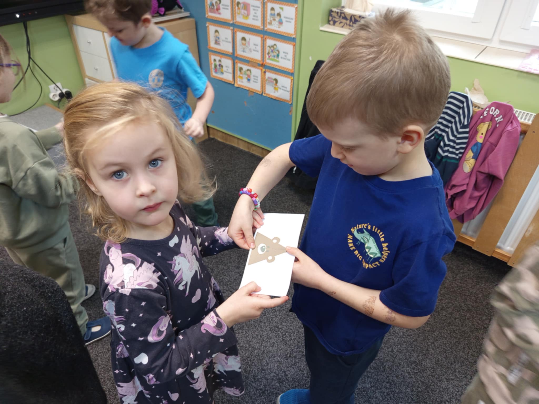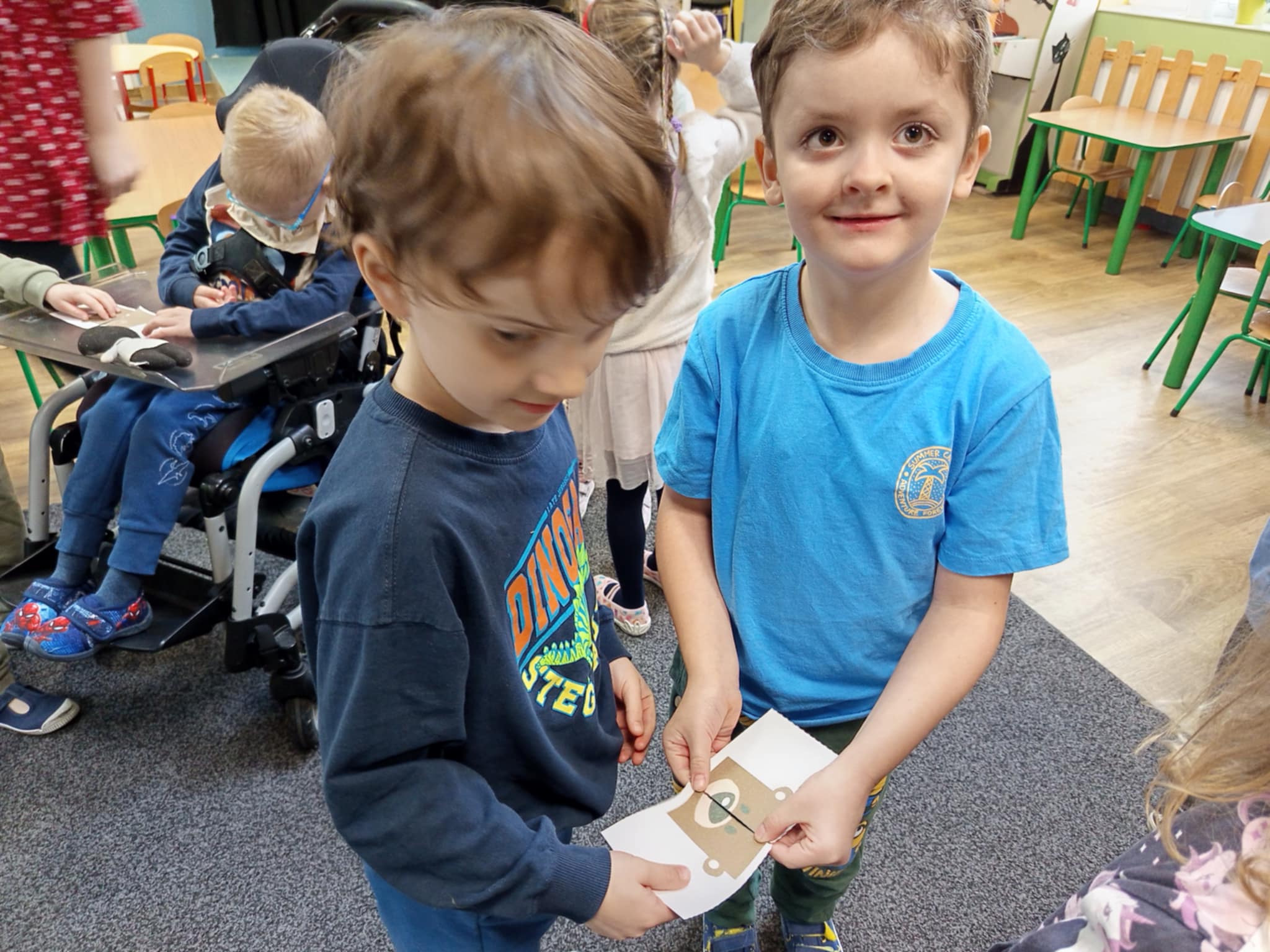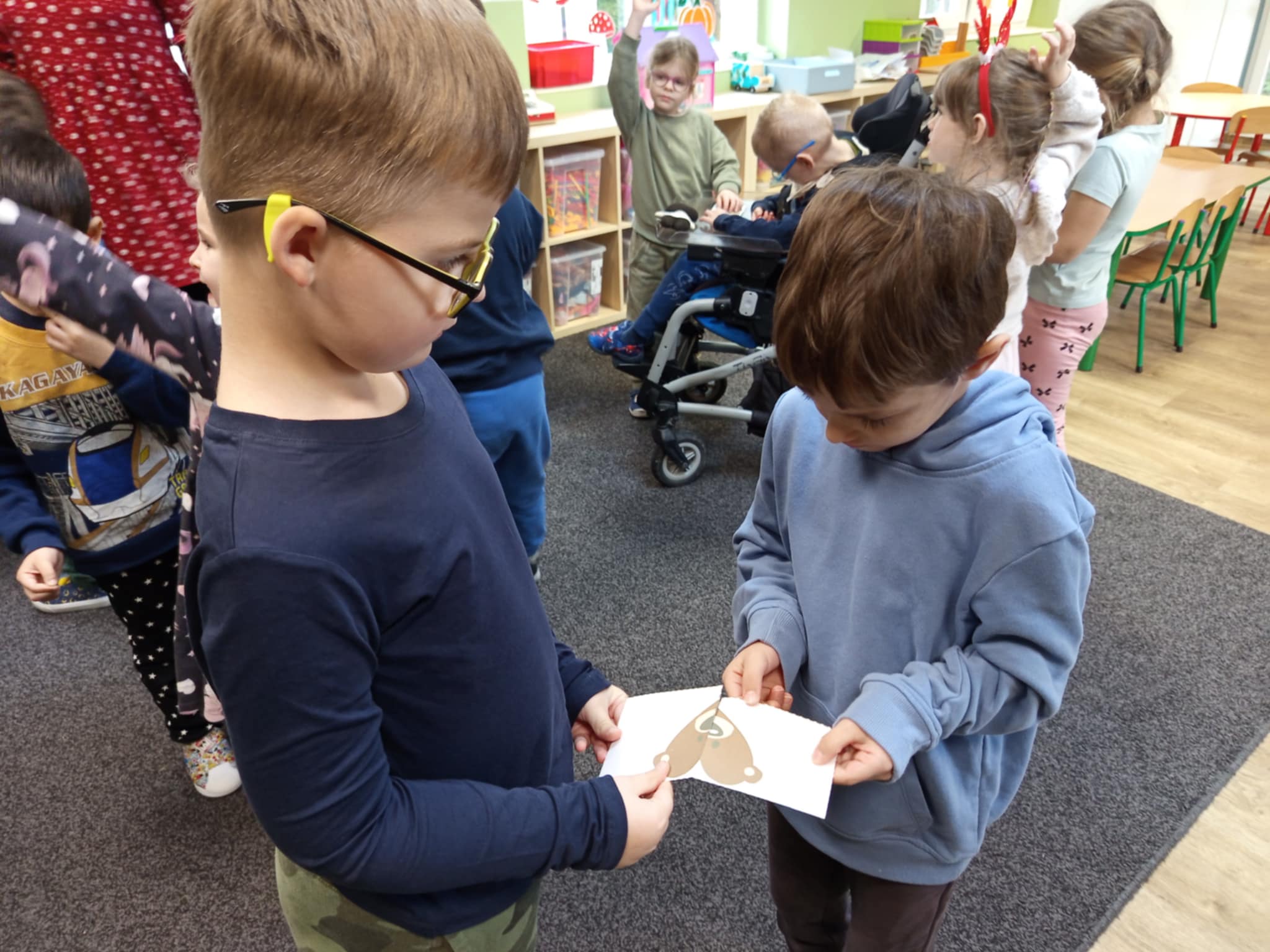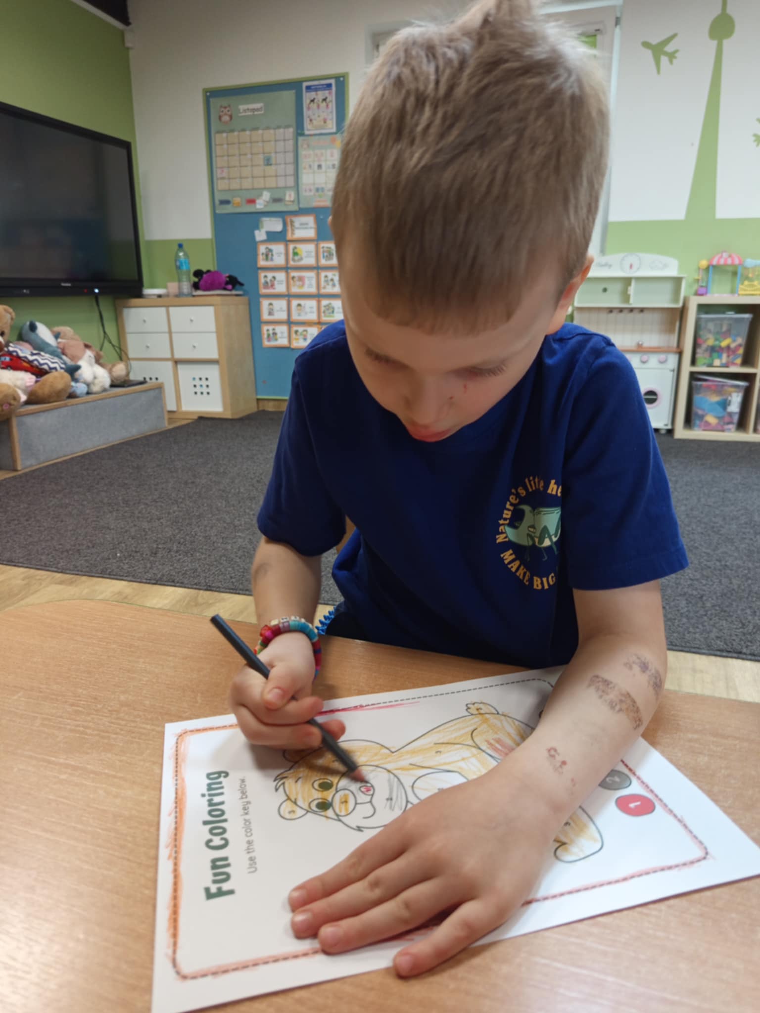 Dzisiaj świętowaliśmy w naszej grupie Światowy Dzień Pluszowego Misia. W trakcie porannych zajęć wykonywaliśmy różne „misiowe” zadania – rozpoznawaliśmy i nazwywaliśmy popularne misie z bajek, rozwiązywaliśmy zagadki, wyleczyliśmy kontuzjowanego niedżwiadka, wzięliśmy udział w zabawie ruchowej, w trakcie której współpracowaliśmy w parach oraz kolorowaliśmy obrazek wg kodu. Na zakończenie każdy z nas otrzymał dyplom przyjaciela pluszowego misia.
