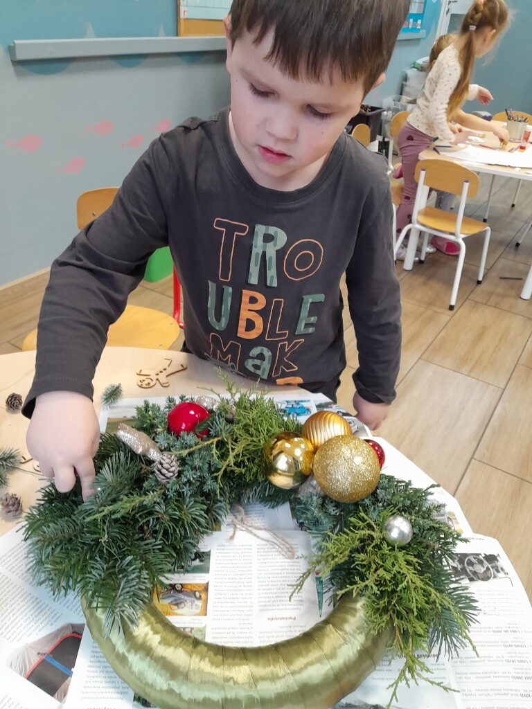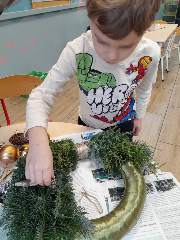 Górskie Orły w tym tygodniu miały dużo pracy: przygotowywały starannie prezenty dla innych dzieci z zaprzyjaźnionego przedszkola, stroiły choinkę, pomagały dekorować salę, przygotowywały się do świątecznego przedstawienia…