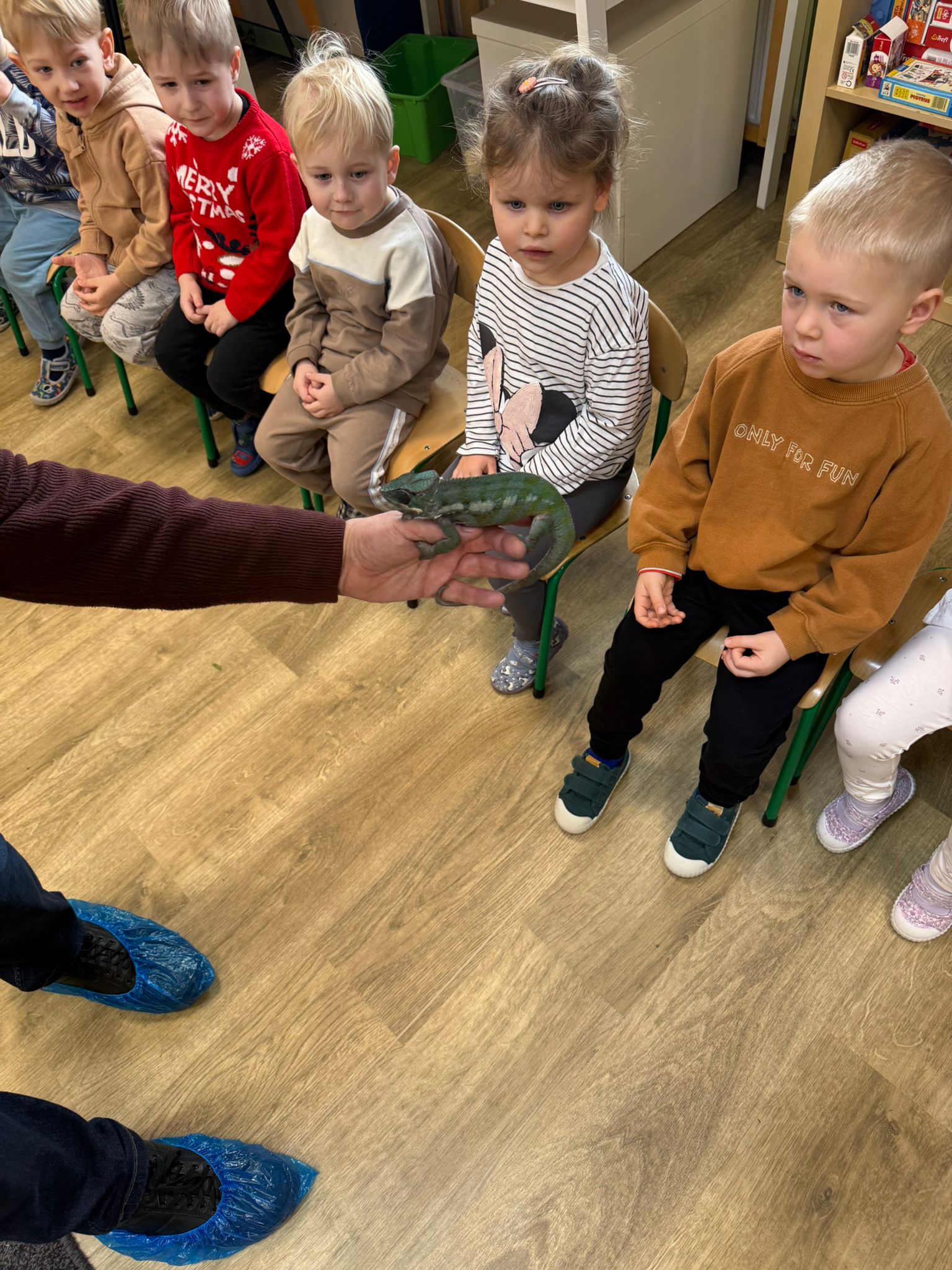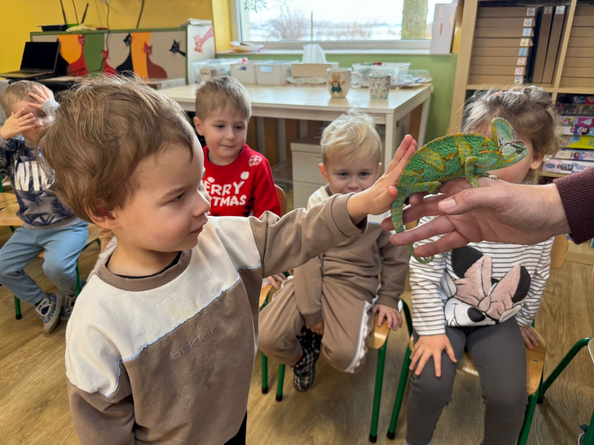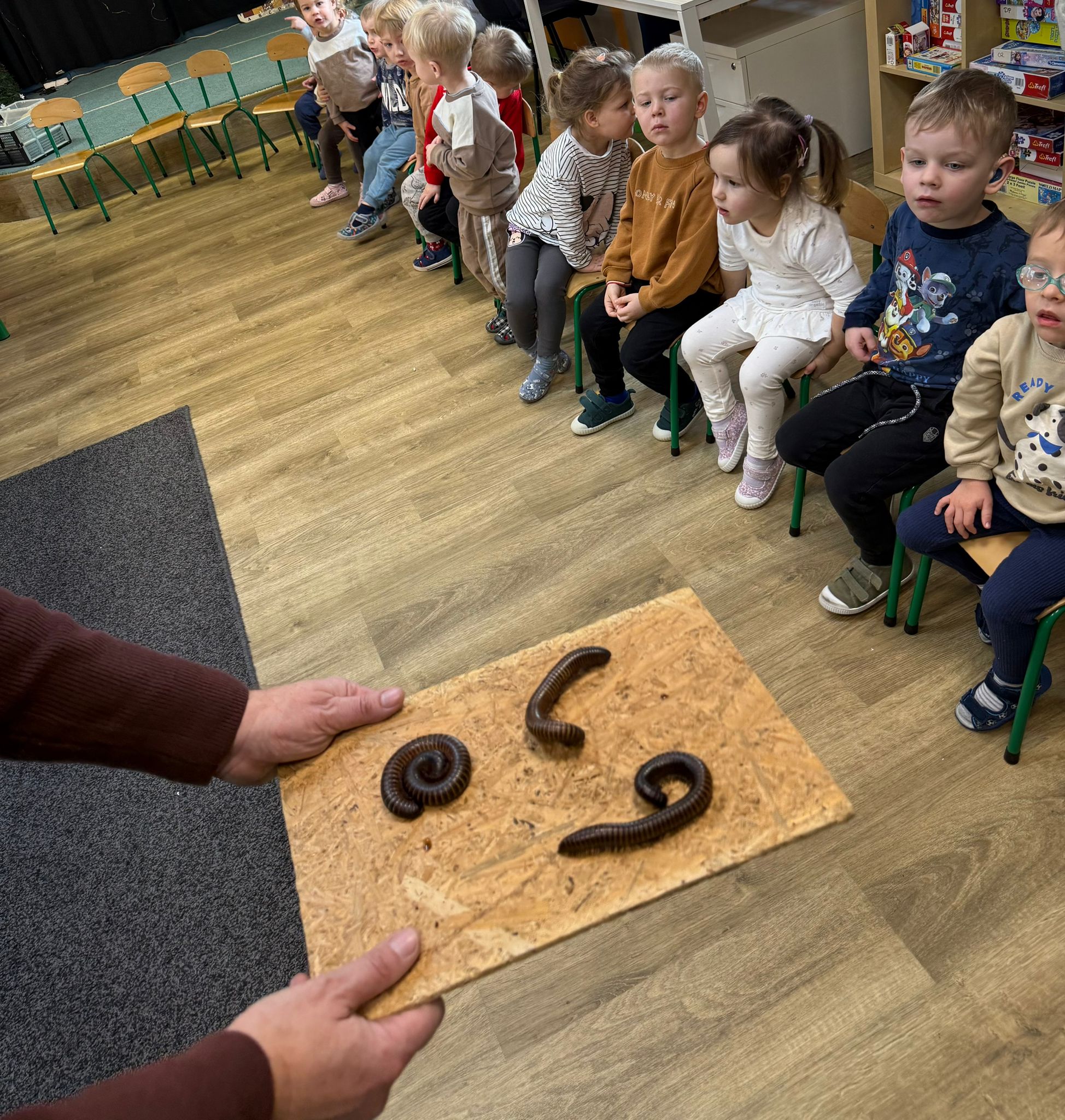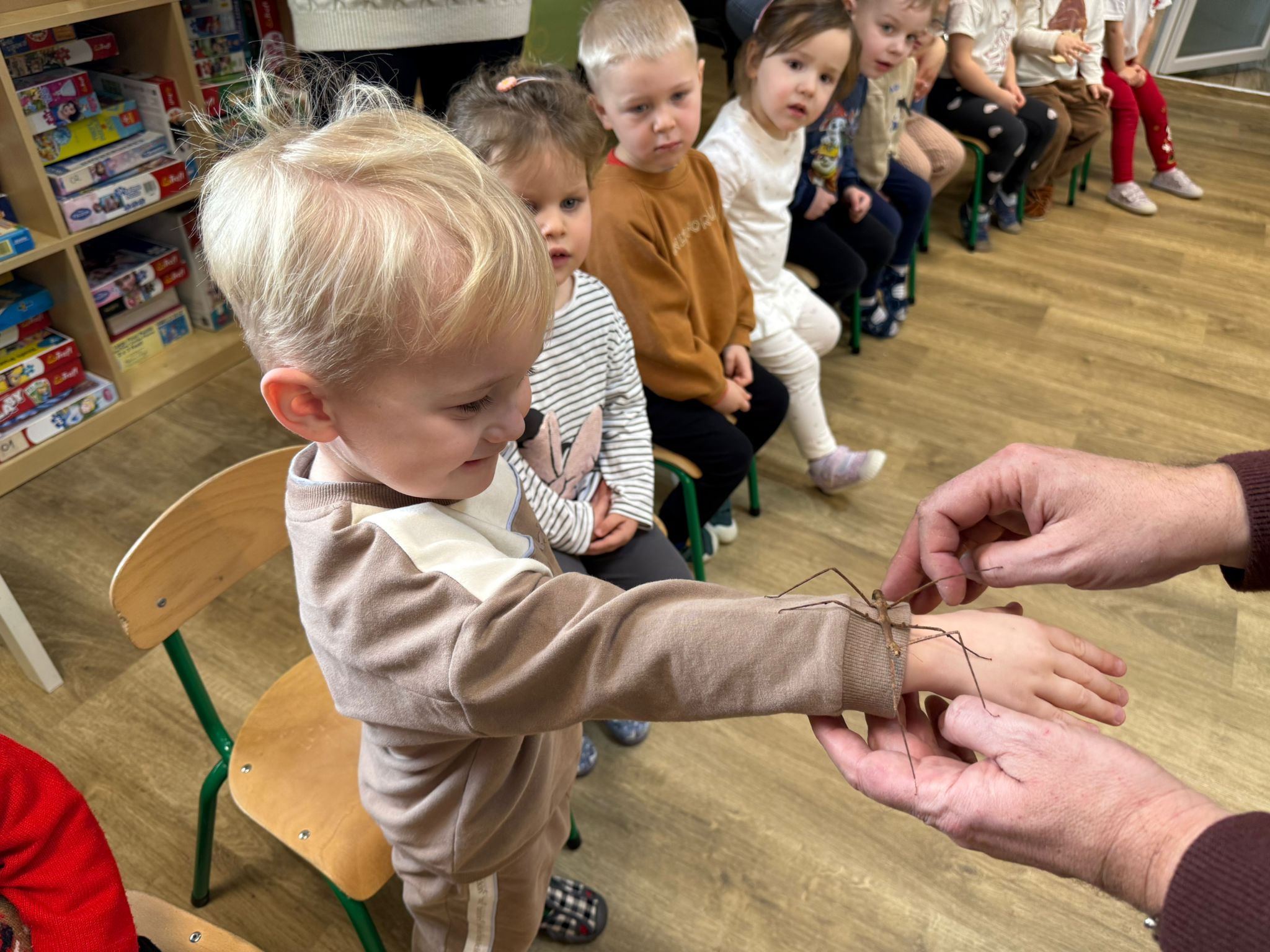 Dzieci uczestniczyły dziś w wyjątkowym spotkaniu z egzotycznymi zwierzętami. Podczas zajęć mogły z bliska obserwować różne gatunki oraz dotykać wybrane okazy pod opieką prowadzącego. Wysłuchały także krótkich, ciekawych historyjek o życiu zwierząt w ich naturalnym środowisku, co wzbudziło ogromne zainteresowanie i wiele pytań. Spotkanie dostarczyło dzieciom nowych doświadczeń i poszerzyło ich wiedzę o świecie przyrody.