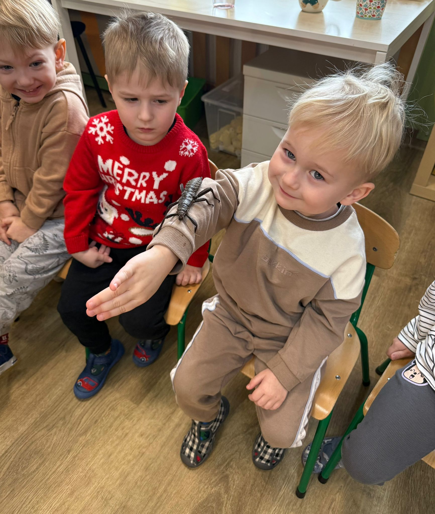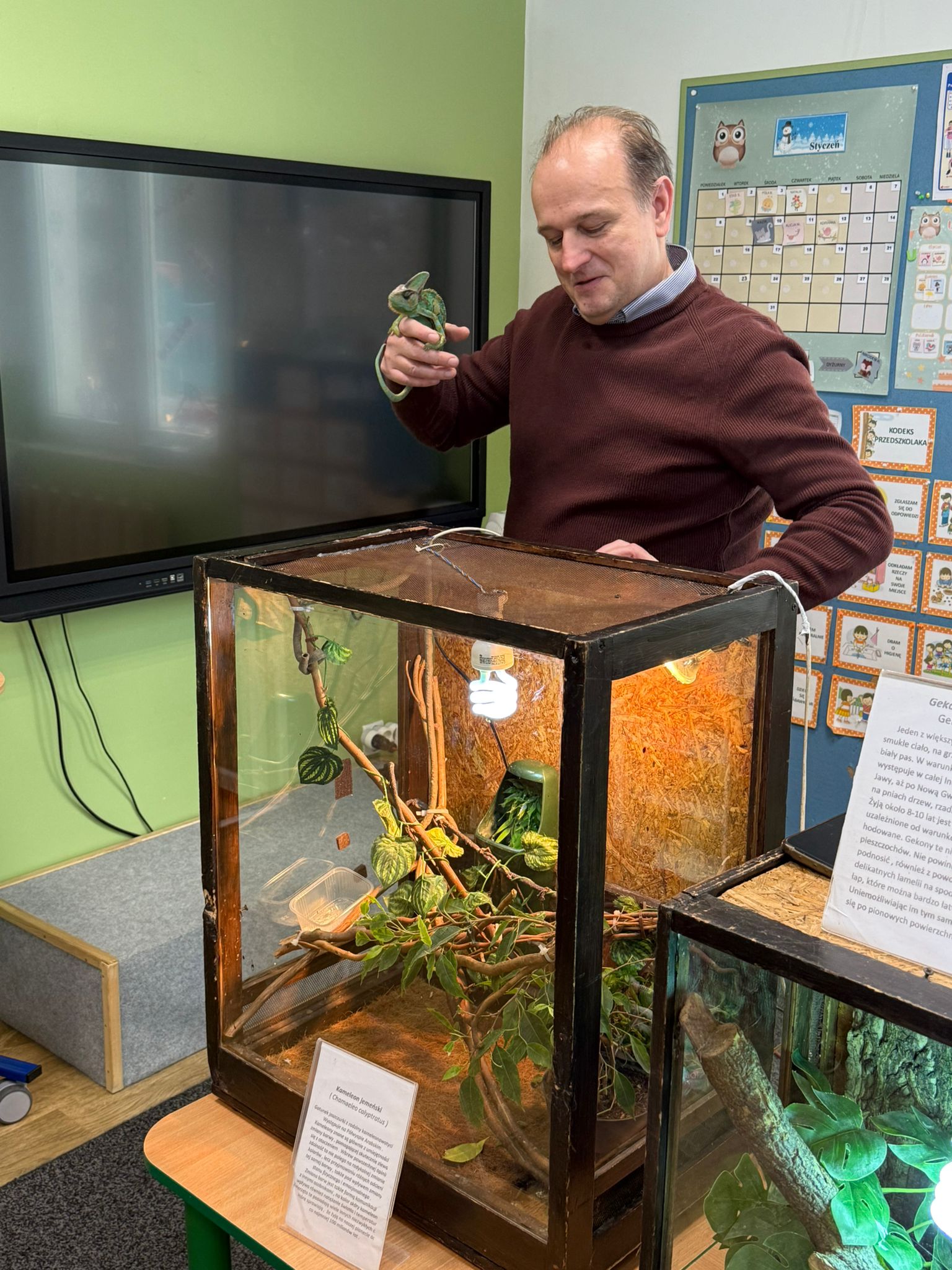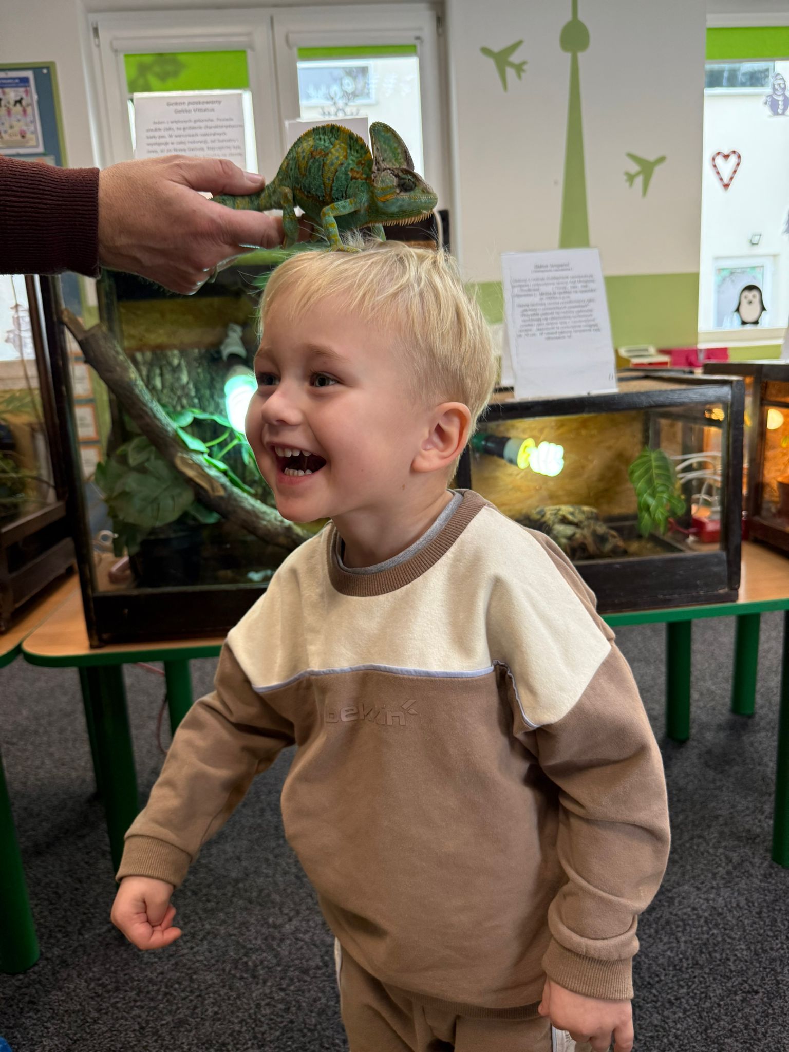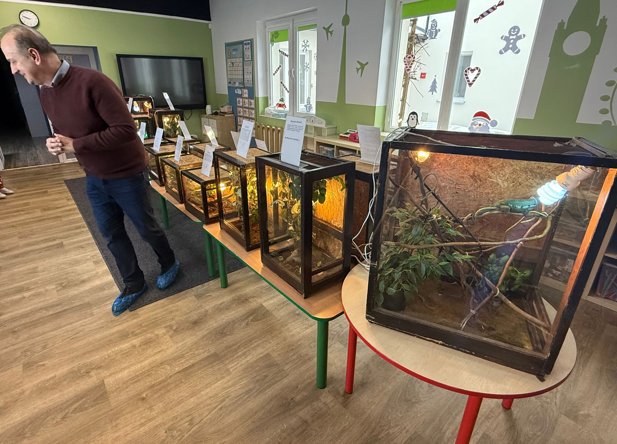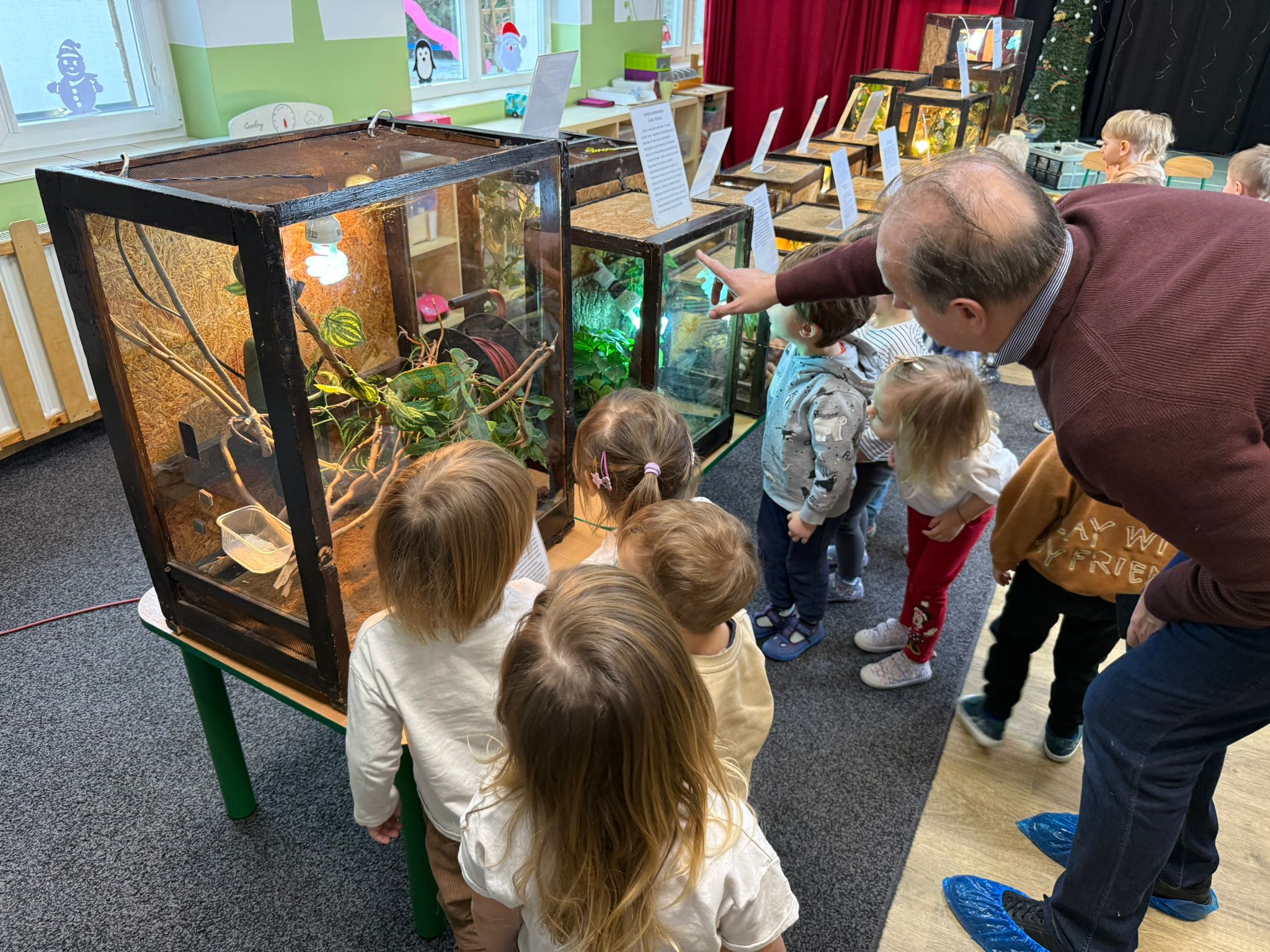 Dzieci uczestniczyły dziś w wyjątkowym spotkaniu z egzotycznymi zwierzętami. Podczas zajęć mogły z bliska obserwować różne gatunki oraz dotykać wybrane okazy pod opieką prowadzącego. Wysłuchały także krótkich, ciekawych historyjek o życiu zwierząt w ich naturalnym środowisku, co wzbudziło ogromne zainteresowanie i wiele pytań. Spotkanie dostarczyło dzieciom nowych doświadczeń i poszerzyło ich wiedzę o świecie przyrody.